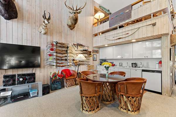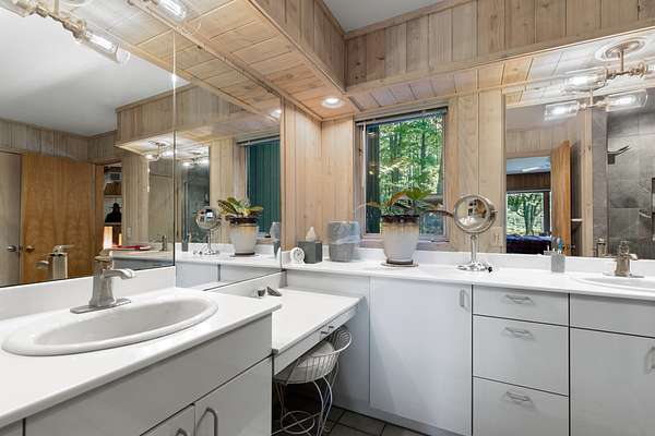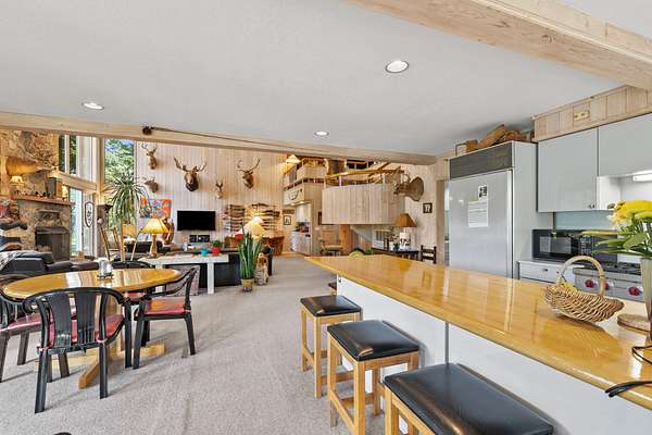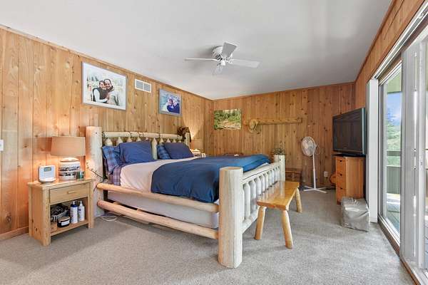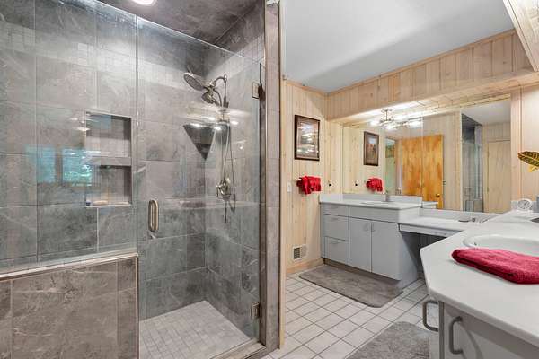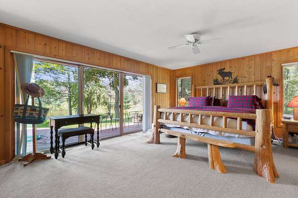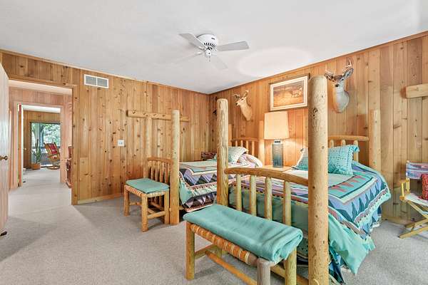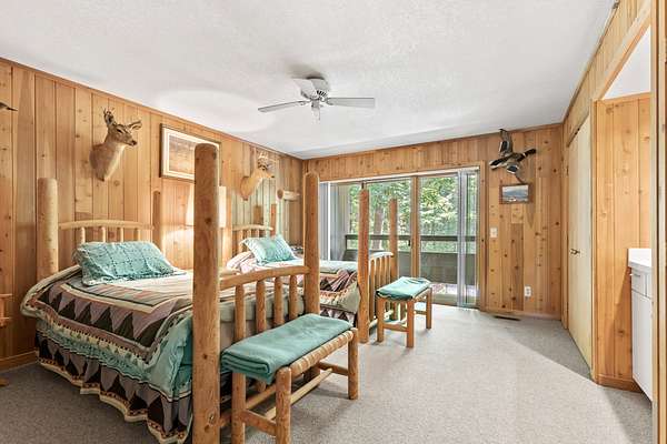 The custom designed lodge was built in 1991 and features 2 main floor master suites, 1 1/2 bathrooms, with the 2nd floor featuring 4 bedroom suites with personal sinks and 2 full bathrooms. Designed by the owners for comfortable entertaining for their family and friends.