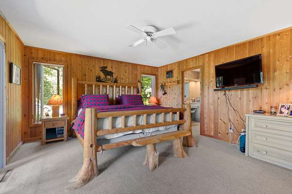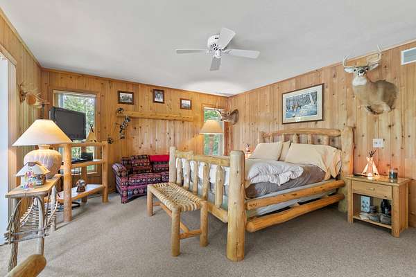 Overall, there are 6 bedroom suites and 3 1/2 bathrooms to accommodate your guests in the main lodge.