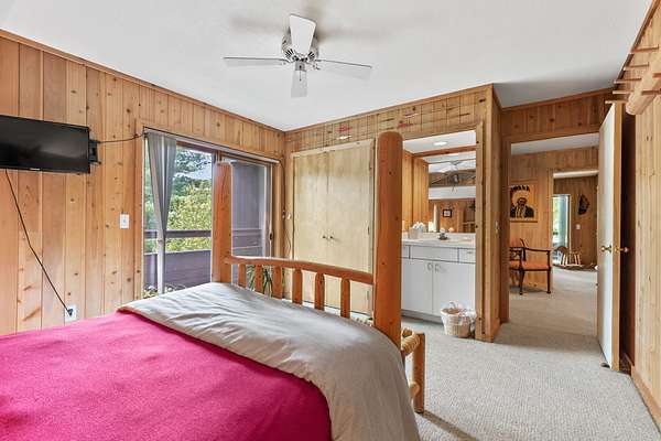 The guest house was built in the 1980's, featuring 5 bedrooms, 2 baths, forced air heat with a fireplace and a wood stove. The living area and deck overlook the pond and the vibrant creek that flows through the front yard.