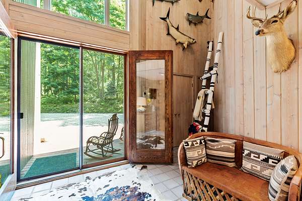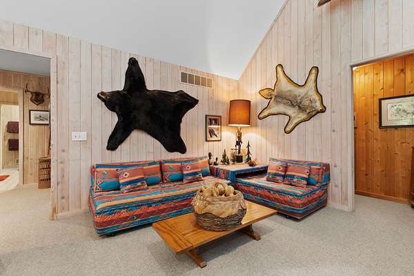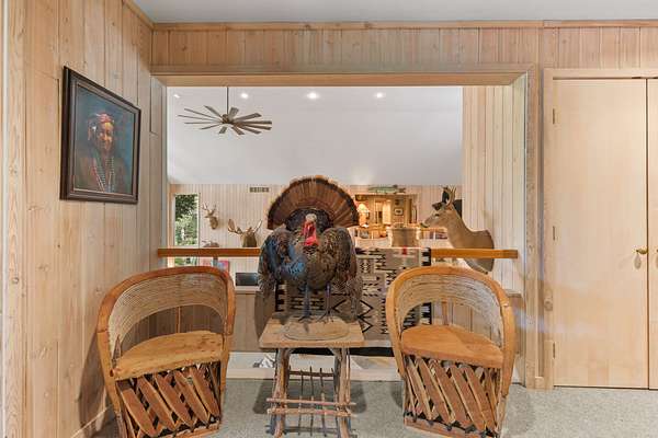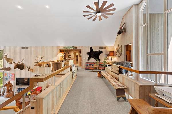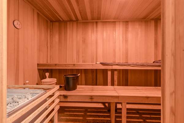 A nice lounging area overlooking the great room that has a custom 6 person sauna to compliment the lodge experience.
