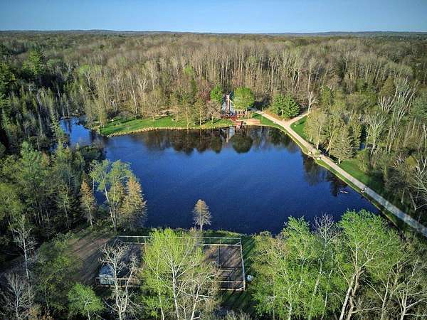 This "Pure Michigan" paradise is a pristine 645 acre property featuring heavily wooded terrain and a spring fed pond stocked with rainbow and brown trout. A vibrant creek, marsh pond, swales and cedar swamps makes for the ultimate deer and wildlife habitats. The impressive Lodge and Guest House make this one of the finest recreational properties to ever become available in Michigan!