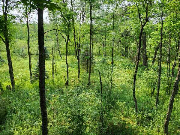 Heavily wooded rolling terrain with hardwood, pine and poplar trees. The marsh pond, cedar swamps, cattail swales , 17 rye food plots, the natural deer bedding areas and an abundance of wild berries make for ideal wildlife habitats.
