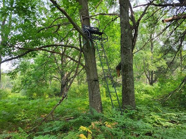 A beautiful valley field with 10 mature producing apple trees, rye food plot, box blind and 2 ladder stands are one of the desired hunting areas.