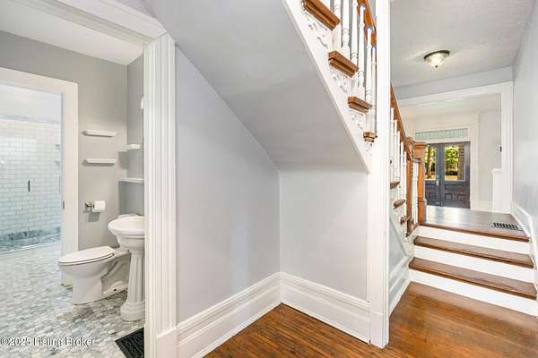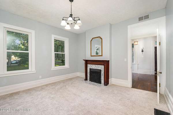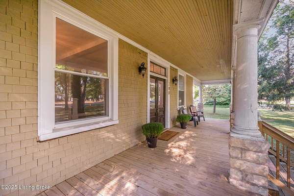 Move in ready! This beautiful home has been updated recently with double pane, energy efficient windows on the entire home, a new electric panel, 2 AC units (2023), replaced/updated front porch, new stainless steel appliances (range, fridge & microwave), new carpet throughout, new driveway, and fresh paint. Washburn House sits on 1.68 acres at the corner of Ash Avenue & Lagrange Road. This exceptional property offers 12 foot ceilings on the 1st and 2nd floors, five bedrooms and two full baths, seamlessly blending character with thoughtful updates. The wide front porch opens into an elegant living and entertaining room, while the main level features an eat-in kitchen, dining room, bedroom, family room, and convenient first-floor laundry. Upstairs, four additional bedrooms and a skylight-lit full bath provide space and comfort. Six original fireplaces, hardwood floors, and abundant natural light highlight the home's timeless appeal, along with a stained-glass window showcasing the original family crest. Surrounded by mature trees and located just steps from award-winning schools, shopping, and dining, this property offers both privacy and community. Don't miss the chance to own this spectacular home and property.