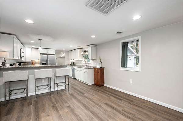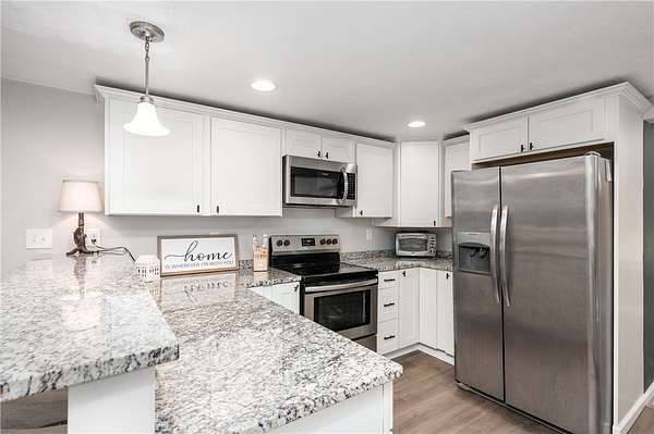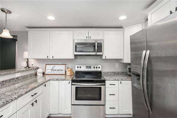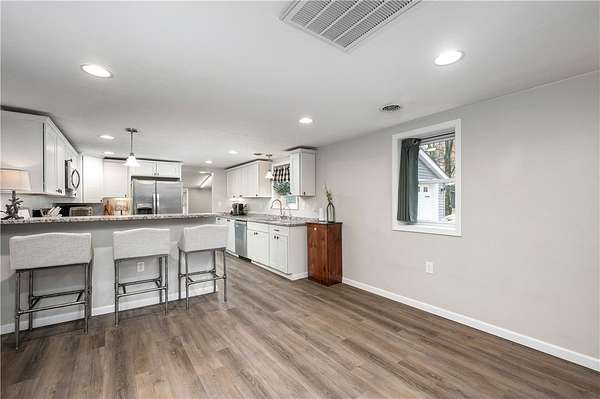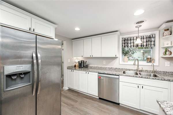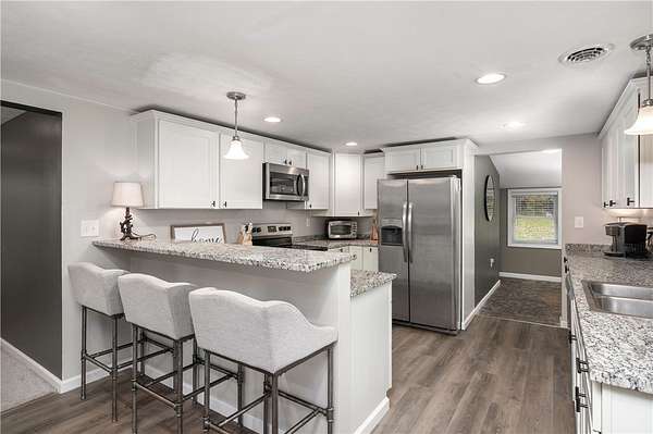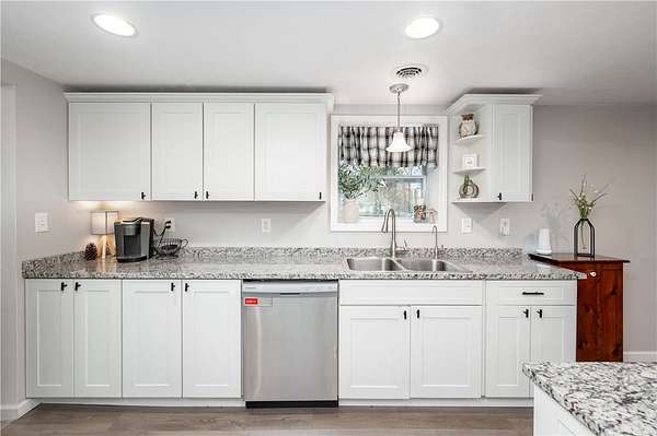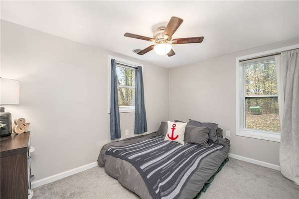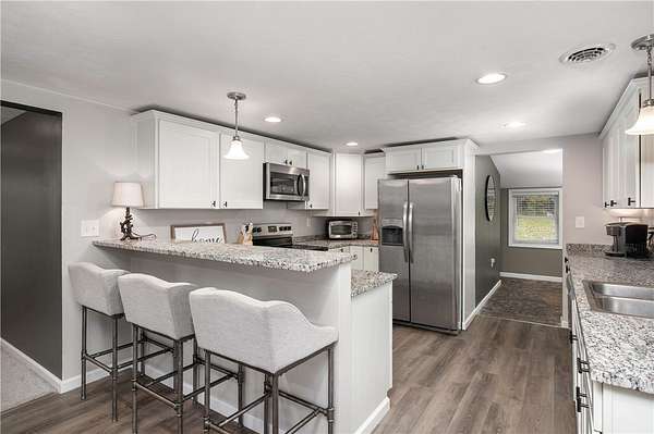 Introducing a sprawling 4-acre home just outside Grove City, this beautifully remodeled haven is for those who cherish comfort and style. This 3-bed, 1-bath, completely remodeled in 2020, welcomes you with an open-concept living space. Step inside to discover refined finishes. Culinary dreams come alive in the kitchen w/granite countertops, white Kraftmaid cabinets & sleek SS appliances. A main-floor laundry adds everyday convenience. The spacious bathroom is a sanctuary w/a tile shower/tub combo, dbl vanity, ample storage, and stylish tile flooring. Each bedroom offers a peaceful retreat for restful nights. Outside, the oversized backyard is perfect for gatherings, featuring a patio and wooded views. Quad trails through the woods for outdoor adventure, and a detached 2-car garage provides ample space for vehicles. With a true sense of belonging, 100 Blom Rd is more than a house--it's a place where future family memories await. Embrace the joy of country living, just minutes from town.
