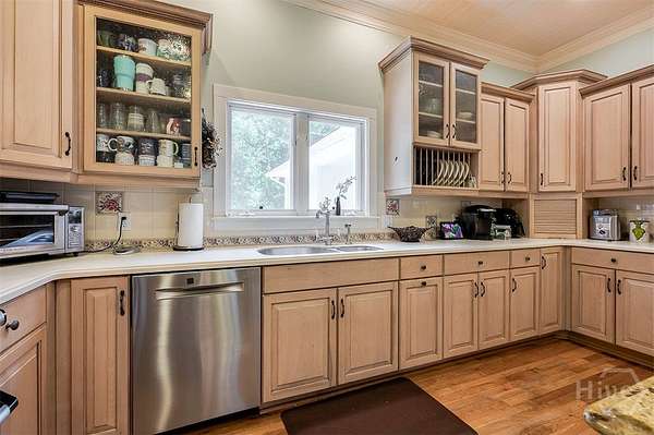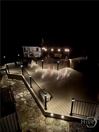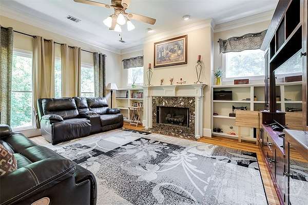 LISTED BELOW APPRAISED VALUE! Seller offering $10K in concessions-use toward closing costs, rate buy-down, or Buyer's choice! This elegant Low Country custom estate sits on a private multi-parcel lot. The main level features a cozy den with fireplace and screened porch, and gourmet kitchen with high-end finishes, and an owner's suite with spa-like bath, walk-in closet, and serene backyard views. Two additional rooms provide flexible use as offices, den, or guest space. Upstairs, find two bedrooms each with private baths and large walk-in closets. The finished walk-out basement offers a den with fireplace, flex room, bonus bedroom, and full bath-perfect for guests or multi-generational living. Outdoor living includes a wrap-around porch, multi-level composite deck, and outdoor kitchen. A semi-detached garage/workshop with bonus suite above (not in sq ft) adds value. Surrounded by mature trees in a pool community, with an extra lot included and a third available at a discount w/purchase!
