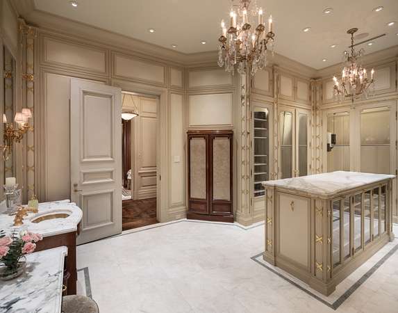The private owner's wing, located on the ground floor, offers an unparalleled retreat. A sumptuous King bedroom flows into separate his and hers dressing rooms, featuring expansive walk-in closets multiple dressing mirrors and extra storage areas. The lady's boudoir is a sanctuary unto itself. The luxurious bath suite boasts a grand marbled dressing room, spa, jacuzzi, and steam room for ultimate relaxation.