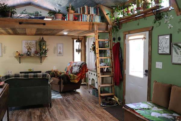 Introducing a unique tiny home, perfect for nightly rentals or ideal for those looking to downsize. This charming residence features one bedroom on the main floor, a full bath, and a cozy laundry room, creating a seamless flow between the open kitchen and living area. A loft bedroom adds extra space for guests or personal use. Nestled on 3.6 acres, this property offers a tranquil escape just 5 miles from the courthouse in downtown Mountain View. Enjoy stunning seasonal views, especially in fall and winter, enhanced by some landscaping that's already in place. Finish the landscaping to suit your taste. Conveniently located only 6 miles from the Ozark Folk Center and a short drive to the picturesque White River, this tiny home is the perfect retreat for nature enthusiasts and those seeking a peaceful lifestyle. Enjoy Saturday nights on the town square dancing and listening to music. Don't miss your chance to own this delightful property!