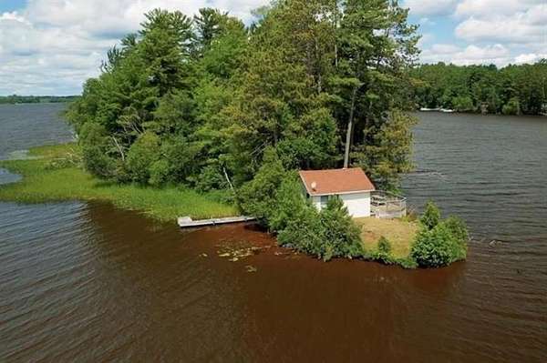 Now is your chance to own an ISLAND! This unique property was once a fishing camp. 2 of the original bunk houses are still on the property, and not included in the finished square footage amount. Wake up to the quiet lapping of the waters and enjoy the relaxing wildlife. On the north side of the island is an eagle’s nest. Seller’s have witnessed deer with their fawns on the island and much more! Located near the Happy Snapper on Lake Mohawksin. The cabin on the island, sleeps 6 and has many of the comforts of home! Electricity and phone are ran out to the island. Kitchen has custom made knotty HICKORY cabinets. Step out the door onto a deck overlooking the water. Sandy shoreline makes this the perfect setting to enjoy the Northwoods. Step towards the southern point of the island where the campfire ring is appointed with water on 3 sides. There is also a dock nestled on the calmer side of the island. There is a bath house with compostable toilet and shower. Peace and quiet abound on this 1.34 acre private island.