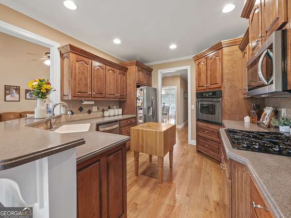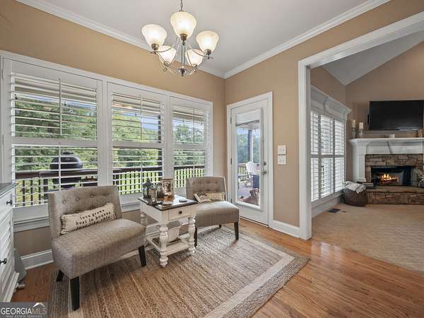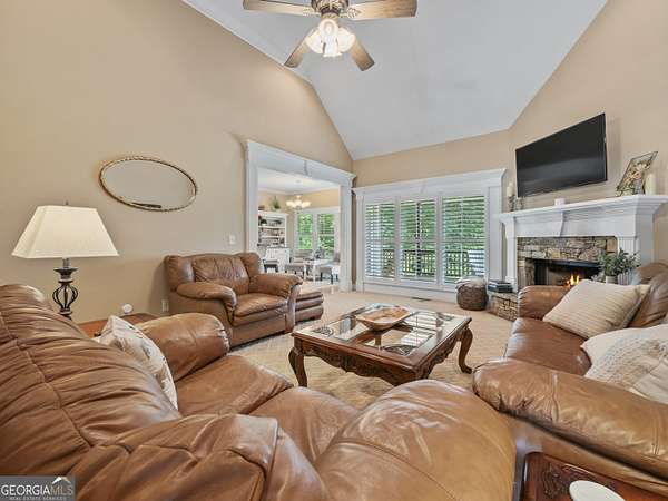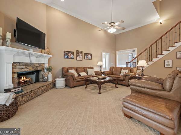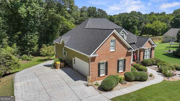 Welcome to 100 Cole Point - a well maintained home with a 1.6 acre lot backing up to Walnut Creek. The home is located in one of Hoschton's most sought after communities. With three levels, this 2,700+ sq.ft. home combines thoughtful design, and premium amenities for ultimate comfort and functionality. Inside, you'll find 4 spacious bedrooms, 3.5 bathrooms, a dedicated office, dining room, and more! The kitchen offers custom cabinetry, a built-in wall oven and microwave, a kitchen island with a gas cooktop, as well as a cozy breakfast nook, and direct access to the formal dining room. The living room has a beautiful stone fireplace, detailed 10+ foot ceilings, built-in shelving, and direct access to the expansive back deck-ideal for indoor-outdoor entertaining. On the main-level, the master suite is generously sized and enhanced with tall ceilings that create an elevated feel. The en-suite bathroom includes walk-in closets, double vanities, a separate shower and soaking tub. Upstairs offers a generously sized bedroom, along with a full bathroom, a sitting area, and ample closet space. Downstairs, the basement offers an additional 2200+ sq /ft of unfinished space that is awaiting to be finished with endless opportunities. Outdoor area offers a large back deck perfect for grilling and entertaining. The community offers amenities including a swimming pool, tennis courts, clubhouse, playground, and picnic areas - perfect for family fun and neighborhood gatherings.