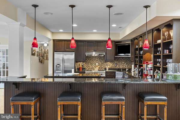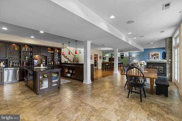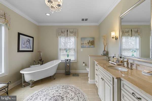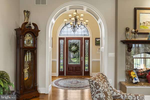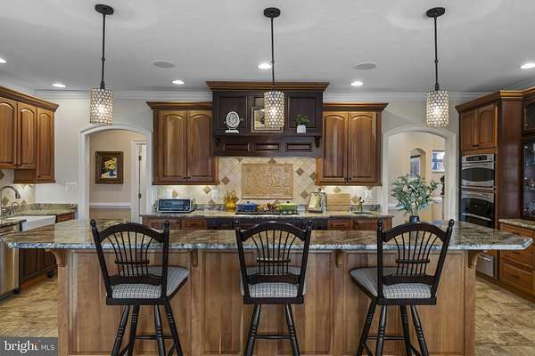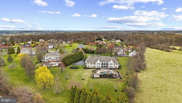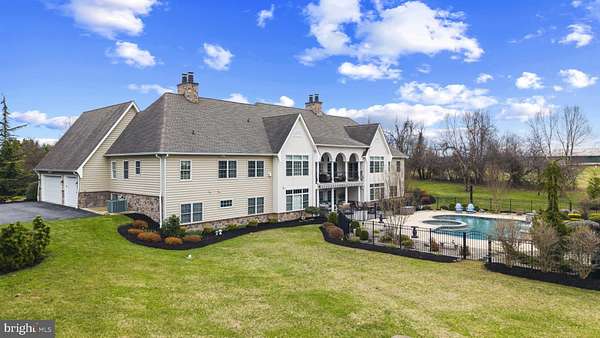 Nestled in the distinguished, quiet neighborhood of Churchville Meadows, with convenient access to I-95 and nearby train stations, this extraordinary custom ranch-style home offers seamless connectivity to Washington, D.C., New York City, and Philadelphia. With over 7200 finished square feet, this remarkable residence features two complete levels of living-essentially two homes in one-each with its own chef's kitchen and a private elevator providing effortless access between floors. Built in 2012, this home offers 6 bedrooms and 6.5 bathrooms, highlighted by 12-foot ceilings and custom millwork throughout. It includes dual HVAC systems with 8 temperature zones, two tankless water heaters, and a whole-house natural gas generator. Additional conveniences include a 3-car garage, circular driveway, and laundry rooms on both levels. A stately two-sided fireplace, one of five, all thermostatically controlled, welcomes you into the breathtaking Great Room, defined by arched doors and windows to create architectural symmetry that travels throughout the home. The open layout flows into a spacious dining area, family room and upper-level chef's kitchen, featuring solid, two-toned cherry cabinetry, a 5-burner Wolf cooktop and range hood, double oven, granite island with prep and seating areas, built-in bar with beverage refrigerator, glass front lighted cabinetry and pass-through to Great Room. Separate catering kitchen/butler pantry includes full refrigerator, built in cabinetry and sink. The formal dining room is an octagonal showpiece enhanced by a wall niche with marble ledge, pass through window with matching marble detail and elegant arched openings. The expansive primary suite features a Heat & Glo fireplace, private laundry, and access to a covered Italian/Mediterranean style balcony overlooking the pool, along with two adjoining luxury suites, each with sitting areas, custom walk-in closets, and spa-inspired baths, including a clawfoot soaking tub with Swarovski crystal chandelier and fixtures. Every closet in the home designed and outfitted by California Closets. A private study with built-in bookcases and fireplace sits just off the primary suite. An additional upper-level bedroom offers a private bath and sitting area. The main level also has a well-appointed and beautiful half bath. Take the elevator to the lower level which includes four spacious bedrooms-two with en-suite baths and two sharing a full bath. All baths have dedicated linen closets. There is also full laundry room. Designed for entertaining, this level features a soundproof state of the art 26-foot theater with reclining seating for nine. Each seat has an integrated tray table and cup holder. The custom lighting choices create a true theater experience. Attached media room is complete with premium media systems and Roku integration all controlled by remote. The theater room alone is valued at over $100K. There is an amazing wine room with built in storage and elegant finishes built to stay naturally cool with a lovely glass door. A second full kitchen with tiered granite countertops, GE Profile appliances, Wolf cooktop, and bar seating opens to a spacious entertainment area with two sided fireplace, teak flooring, and flexible recreation space, enhanced by a whole-home Sonos speaker and intercom system. Outdoor living is exceptional, with a 33,000-gallon saltwater pool, three waterfalls, kiddie pool, matching pool shed, and bluestone patio with lighting, fans, and retractable awning. The space is prepped for an outdoor kitchen with gas hookup, sink rough-in and refrigerator outlet. A covered balcony which can be accessed from both the Great Room and the primary bedroom features a Carolina Blue ceiling, fans and retractable 18' Sun Setter screen adds additional outdoor enjoyment. Full House Generator. With a French Provincial front and Mediterranean-inspired rear, this home blends elegance, functionality, and ideal multi-generational living.
