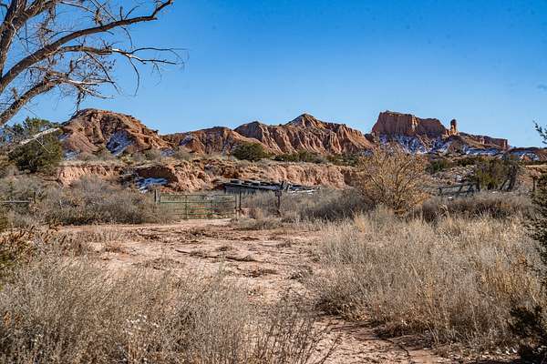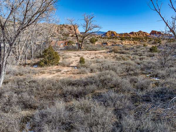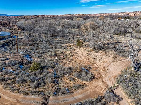 Est $967/moCapture a piece of gorgeous Chimayo land on .95 lush acreage!! Flat land with easy building sites provides for house, guest house and storage buildings! Trees and birds abound! Access to BLM land is available as well. There is a shared well on the property and a gate already provided for access into the property. Water rights also will transfer!! Owner may finance with 20% down.