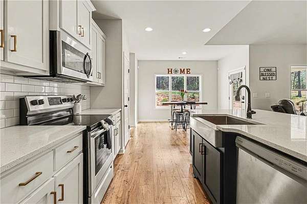 Come see this beautiful 4 bedroom 3 full bath home on a LARGE corner lot in Lagrange GA! Built in 2022 in a developing sub division, this home has SO MUCH to offer! This home features the Primary and a secondary bedroom on the main floor, each with the own full bathroom! The primary bedroom has his and her walk in closets and a large tiled full bathroom with dual vanity. The kitchen area is an open concept which features a large central island with dishwasher and deep sink. Granite countertops are featured throughout the home. The main floor features a large family room, open dining room, and an additional dining alcove on the opposite side of the kitchen. Upstairs features 2 more bedrooms and 1 full bath with a dual vanity as well as a good size bonus room! Laundry room is on the main level just to the rear of the kitchen with side by side hookups and ample space. Large 2 car garage and a large driveway with plenty of parking for many vehicles. There is also an additional gravel driveway that starts off the main road of the subdivision and leads in to about 18 ft from the back door of the house. The yard space on this large corner lot is FANTASTIC!!!! This home is priced to SELL, so come see it today!!!!!