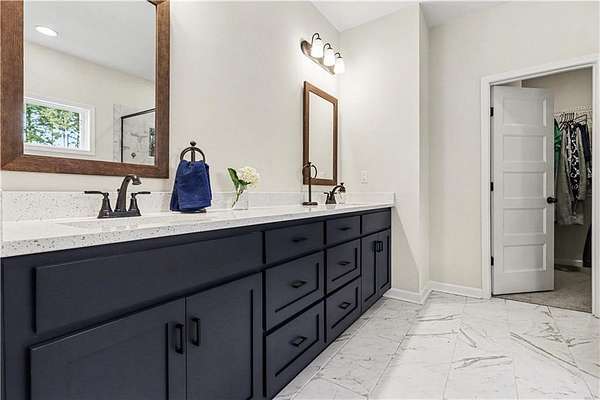 - Double Vanity, His and Hers Closets, Recessed Lighting, Vaulted Ceiling(s), Walk-In Closet(s)