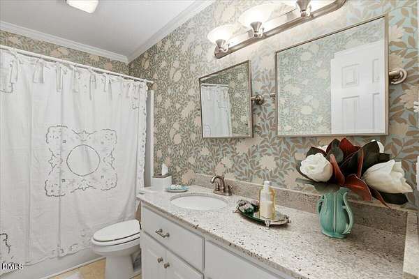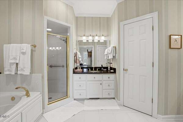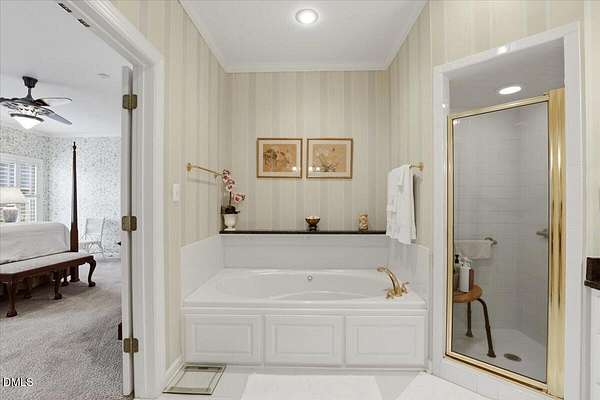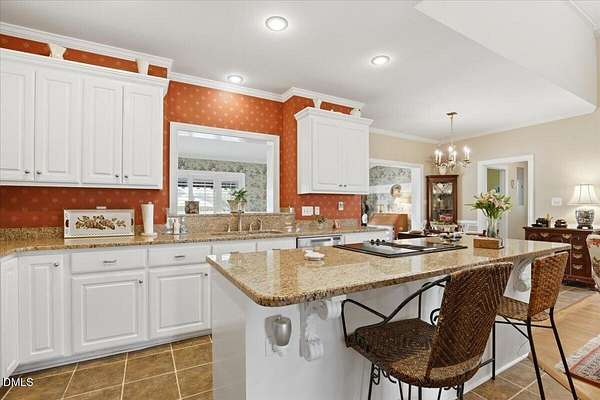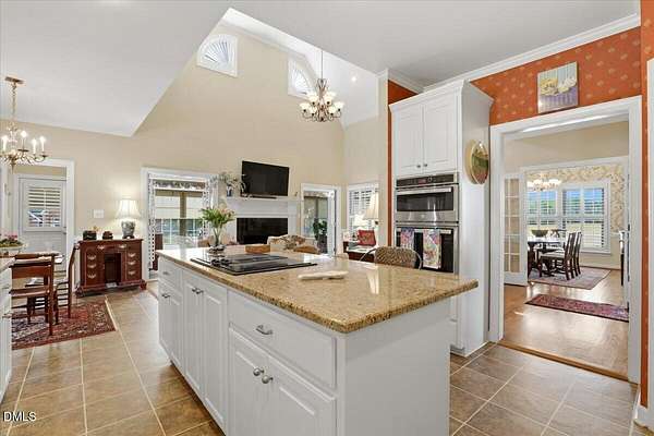 - Bathtub/Shower Combination, Cathedral Ceiling(s), Ceiling Fan(s), Central Vacuum, Chandelier, Double Vanity, Entrance Foyer, Granite Counters, High Ceilings, Kitchen Island, Pantry, Primary Downstairs, Separate Shower, Smooth Ceilings, Walk-In Closet(s), Walk-In Shower, Whirlpool Tub