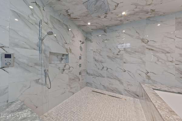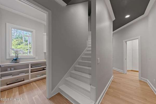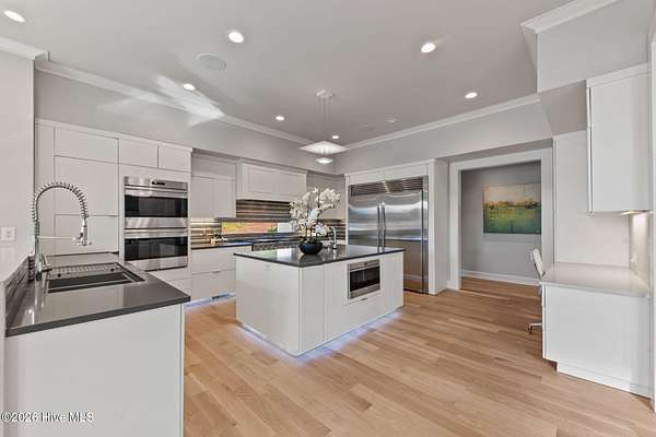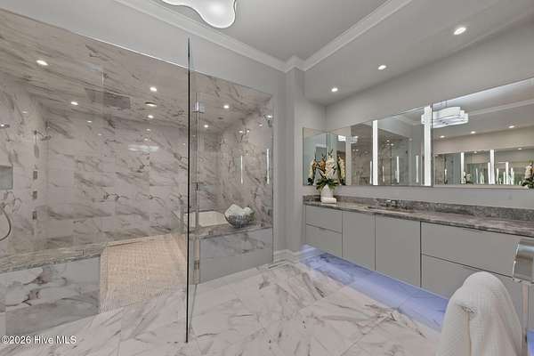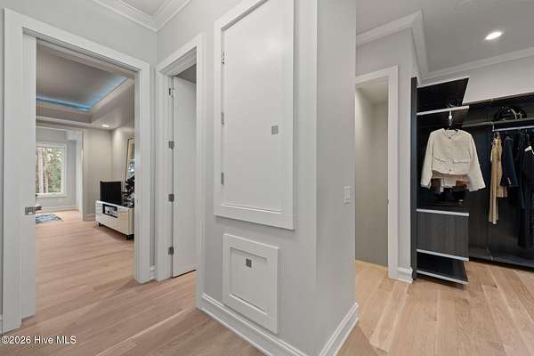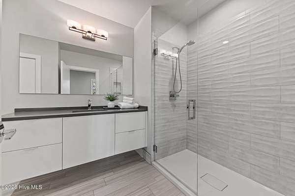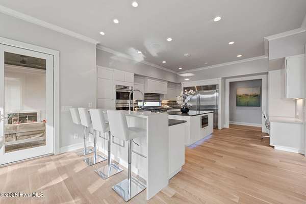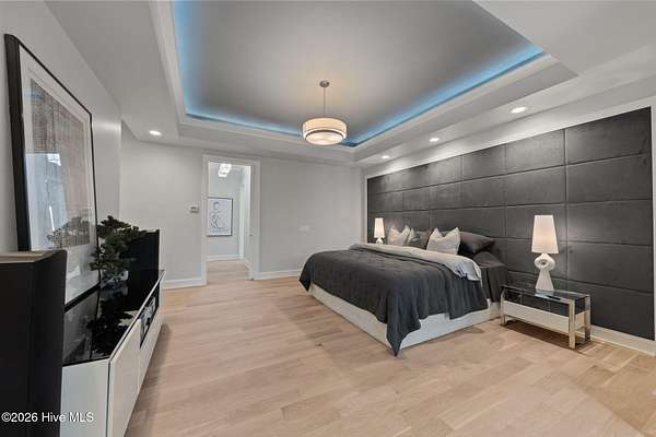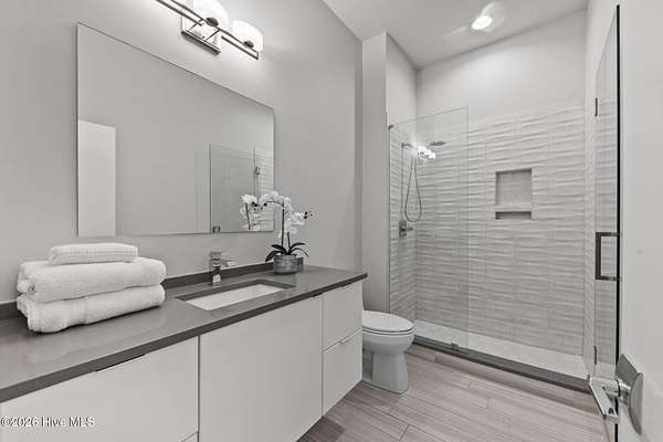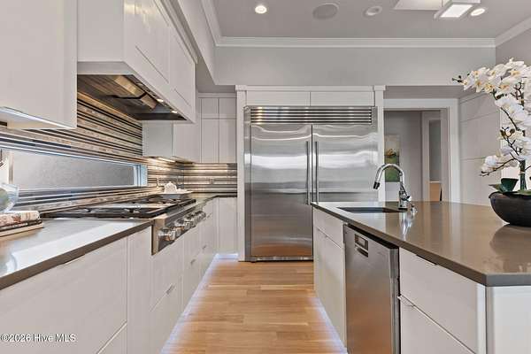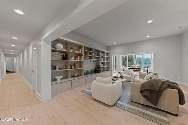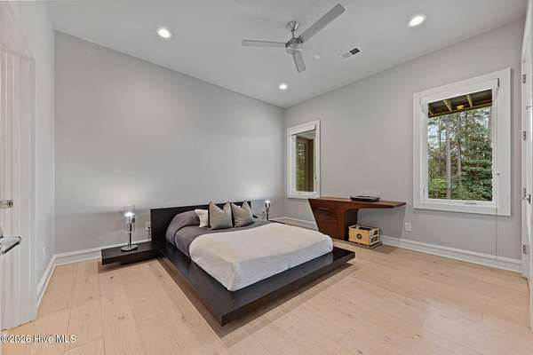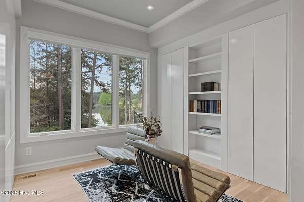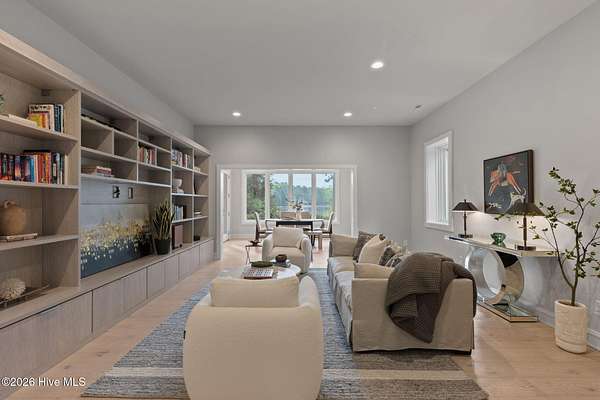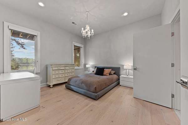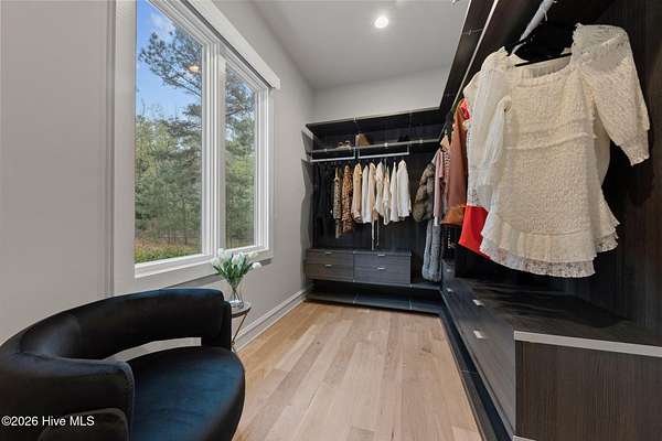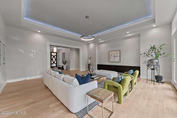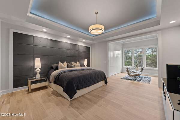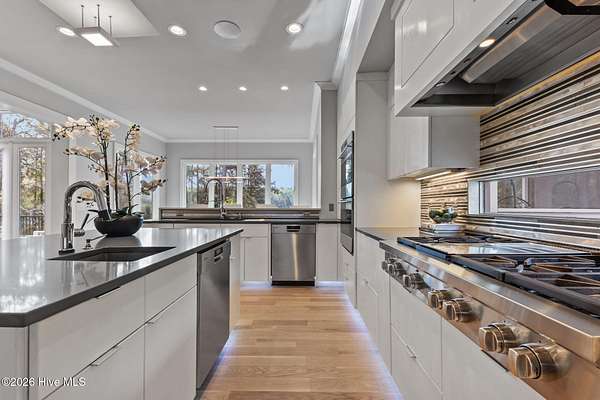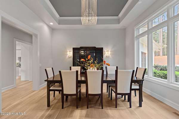 Inspired by the clean, modern lines of South Beach and custom built by Lee Huckabee in 2015, this striking waterfront residence was featured in the 2015 Parade of Homes and represents a rare offering within the gated Country Club of North Carolina. Perfectly positioned on 1.9 acres along Inverness Lake, the property delivers a refined balance of architectural sophistication, privacy, and effortless indoor-outdoor living. Thoughtfully designed for both everyday efficiency and elevated entertaining, the home offers 5,590 heated square feet across two levels, with a main-level primary suite and expansive lower level featuring three additional bedrooms, a dedicated fitness space, and secondary living areas. At the heart of the home, the chef's kitchen is equipped with a Wolf 8-burner gas cooktop, double convection ovens, dual Bosch dishwashers, quartz countertops, and a discreet built-in coffee station. Seamlessly connected living spaces are enhanced by integrated Sonos surround sound throughout the home, porches, and garage, while curated designer lighting and custom millwork create a polished, contemporary aesthetic. The primary suite is designed as a true private retreat, featuring a sound-insulated bedroom, wet bar, dual custom closets, and a spa-inspired wet room with multiple showerheads, soaking tub, and Hansgrohe fixtures. Outdoor living is elevated with over two levels of thoughtfully designed space, including a screened porch with built-in grill and fireplace--ideal for year-round entertaining overlooking the water. Built with both performance and peace of mind in mind, the home includes geothermal heating and cooling, owned solar panels, and a steel-reinforced safe room. Additional features include a three-car garage with over 1,100 square feet, unfinished flex spaces for future expansion, and meticulously planned storage throughout. A distinctive modern retreat in one of Pinehurst's most prestigious communities, this property offers a rare combination of design, technology, and lifestyle.