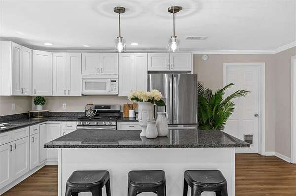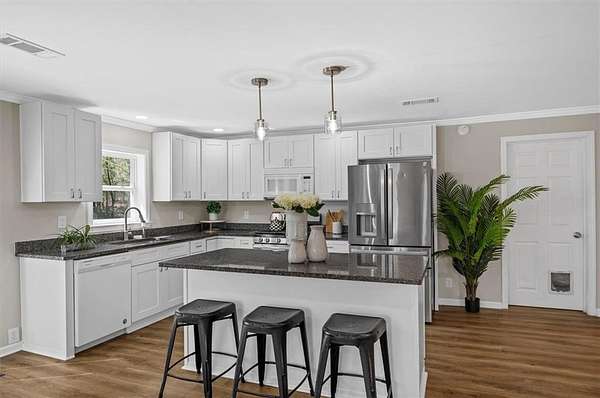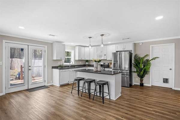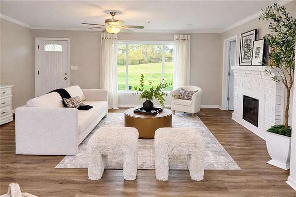 Renovated ranch home on 2.51 private acres in Brooks, GA near Peachtree City offering privacy, land, and move-in ready condition with no HOA and no rental restrictions. This updated 3 bedroom, 2 bath single-level home in Spalding County combines major system upgrades with the space and flexibility buyers are actively searching for. Extensively remodeled in 2019, the home features new roof, HVAC system, plumbing, electrical, ductwork, water heater, windows, vinyl siding, sheetrock, flooring, and appliances, providing long-term confidence for buyers seeking an updated home with acreage near Peachtree City. Recent improvements completed in 2026 include fresh interior paint, newly stained deck, updated landscaping, and front walkway improvements, enhancing both curb appeal and outdoor living. Inside, the open living area is anchored by a wood-burning fireplace, while primarily LVP flooring flows throughout the home, complemented by ceramic tile and carpet in one secondary bedroom. The kitchen features a stainless steel 5-burner gas stove and refrigerator with pull-out freezer drawer and ice maker, with a negotiable washer and dryer creating a true move-in ready home. The 2.51-acre lot offers privacy and usable space rarely found at this price point. A new wood privacy fence with gates on both sides encloses the backyard, while the large rear deck overlooks a private wooded backdrop with mature pines, creating an ideal setting for outdoor entertaining, relaxing evenings, or enjoying the natural surroundings. Additional features include front and side entry access, propane gas service, septic system, and ample parking for vehicles, trailers, or recreational equipment. Located minutes from Peachtree City, Fayetteville, and South Atlanta, the property offers convenient access to shopping, dining, recreation, and both public and private school options in the surrounding area. Buyers searching for ranch homes with acreage near Peachtree City, homes with land in Brooks GA, renovated homes in Spalding County, or move-in ready homes with privacy and no HOA will find this property offers a rare combination of location, updates, acreage, and lifestyle. Home warranty included. Professionally staged furnishings may be available for purchase, offering a turn-key opportunity for buyers seeking a furnished or fully move-in ready home. Privacy. Renovation. Acreage. Location.