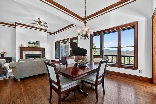 Experience breathtaking, long-range mountain views stretching all the way to Tennessee from this custom-built, all-brick home, perfectly perched on a gentle ridge with easy, all-paved access and a level driveway--no steep mountain roads. The thoughtfully designed main level showcases rich hardwood floors, solid wood trim, and expansive windows that frame the panoramic scenery, along with a welcoming foyer, great room with gas-log fireplace, formal dining area, breakfast nook, and a chef's kitchen featuring granite countertops, handcrafted cabinetry, stainless steel appliances, and pantry. A charming keeping room highlights the awe-inspiring views, while the primary suite offers a triple tray ceiling, bay windows, luxurious en-suite bath, and spacious walk-in closet. A guest suite, beautiful home office, and convenient main-level laundry complete the living space. The daylight terrace level expands your lifestyle with a large family room, second fireplace, two additional guest bedrooms, two full baths, and versatile flex rooms ideal for a play area, second kitchen, or fitness space. Outdoor living shines with a covered main-level porch and lower-level patio, both designed to capture exceptional views. Set within a gated community in the heart of North Georgia's wine and apple country, with popular vineyards and orchards nearby and just 15 minutes from historic Downtown Ellijay, this low-maintenance, garden-inspired property features native plantings, vibrant perennials, meandering walkways, it is a gardener's dream! Attached 2-car garage. Small gated community, 10 homes, low HOA fee of $400 per year. (Full time residents age 65 and older enjoy a big tax savings in Gilmer County - no school tax.) No STR's in this community.