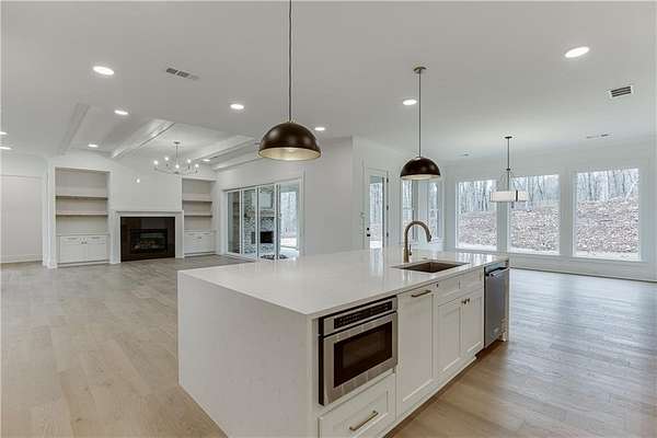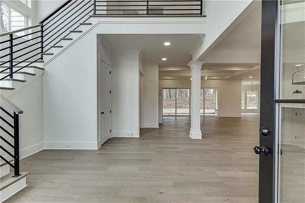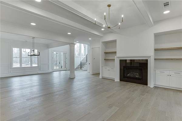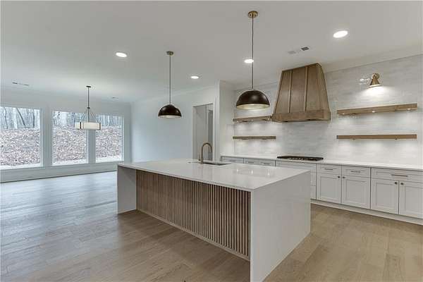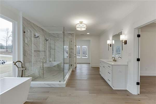Custom-built farmhouse in a new community with large estate-sized lots ranging from 1.5 to over 4 acres in West Jackson County! This open-concept floorplan has a spacious open kitchen with a huge work island, tons of cabinetry, floating shelves adjacent to vent hood area with tiled back-splash, Quartz c-tops, an island waterfall, breakfast area with floor-to-ceiling windows and an enormous walk-in pantry with wood shelving, built-in cabinetry, and under-mount sink. Family room with fireplace and adjacent base cabinetry with stained floating shelves above, painted ceiling beams, and a four-panel sliding glass door. Separate dining room & butler's pantry area. Guest bedroom and private bath on main. Upstairs master suite with hardwood floors. Luxurious master bath with separate his and her vanities, large tiled shower, free-standing tub plus an incredible walk-in closet with built-in shelving and full-length mirror. Three additional upstairs spacious secondary bedrooms all with private baths and walk-in closets. Upstairs laundry room with cabinets above the washer/dryer, pantry cabinetry, and a separate cabinet base sink. Mud room off the 3-car garage. An extended covered rear porch with fireplace, storage closet, and an area perfect for an outdoor kitchen views the wooded private lot. 10' ceilings on the main with 8' tall doors, wide stairway with hardwood treads and tons of natural daylight, hardwood floors on the main level except wet areas...don't miss this one!