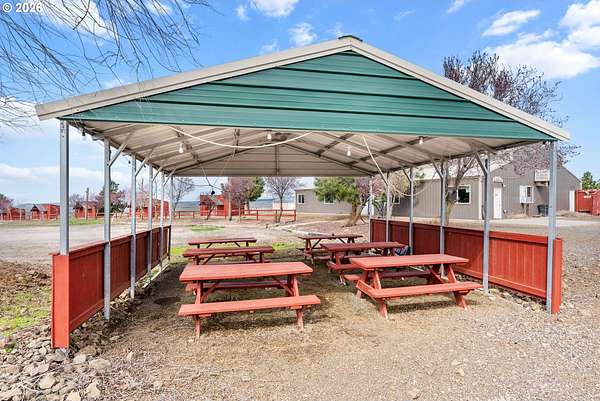 Unique chance to own 160 acres of scenic, farmable land with exceptional views, improved with a comfortable 3 bed 2 bath home and extensive infrastructure, ready for a wide variety of residential, commercial, recreational, or hospitality uses. Properties with this level of versatility, acreage, and existing improvements rarely come available. The property features 16 individual cabins (each with power), bathhouses, providing immediate lodging potential for guests, dude ranch, rentals, retreats, workforce housing, or a family compound. The cabins are spread across the property providing privacy while still allowing for a cohesive retreat or community setting. Several large pole buildings offer substantial covered space for storage, events, workshops, agricultural uses, or business operations. One of the main buildings includes a commercial kitchen, making the property well suited for events, group gatherings, retreats, catering operations, camps, or hospitality ventures.The acreage itself offers wide open space, privacy, and sweeping views in every direction, creating a peaceful setting while still providing excellent potential for future development or expansion. The terrain allows room for additional structures, recreational uses, trails, gardens, or agricultural projects. With the existing improvements already in place, the property is uniquely positioned for a variety of possibilities. The combination of large acreage, multiple cabins, commercial facilities, and stunning natural surroundings creates a truly rare offering with immediate functionality and long-term investment potential. Whether you are looking to establish a destination retreat, expand a hospitality business, create a multi-generational family property, or develop a unique residential or commercial venture, this property offers the space and infrastructure to make it happen. Properties with this combination of acreage, improvements, and development potential are rarely available.