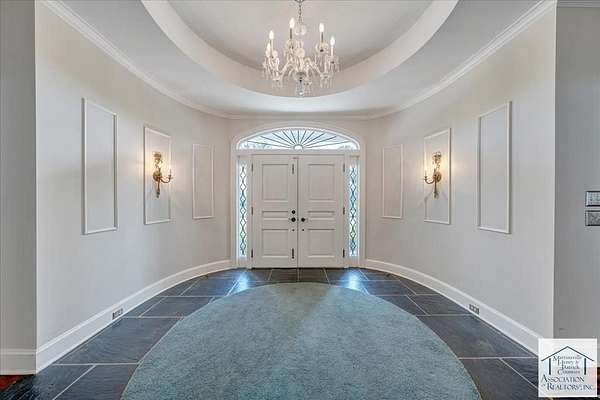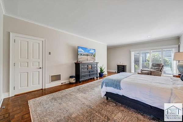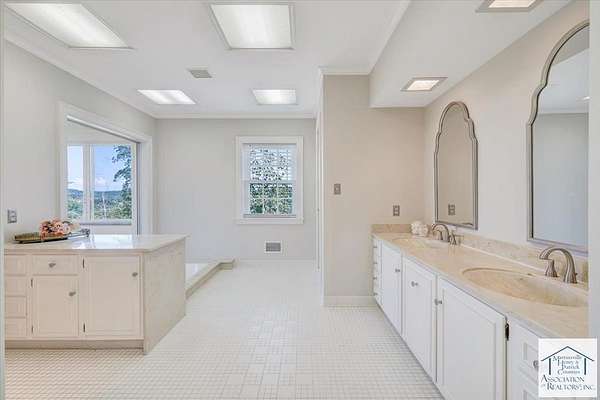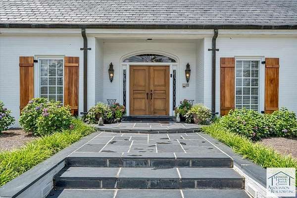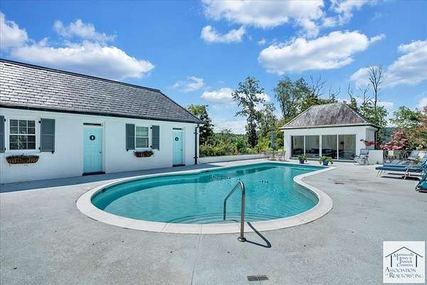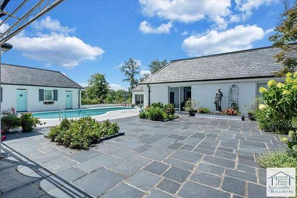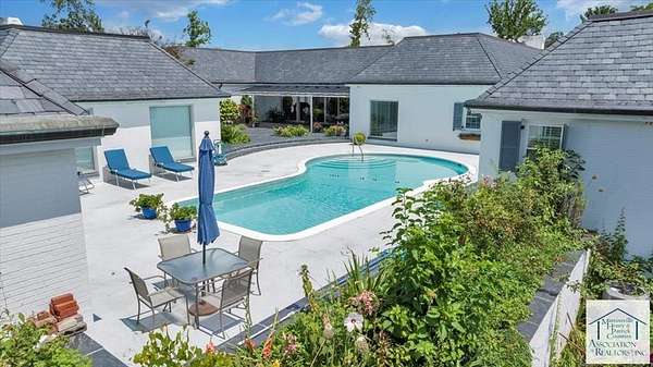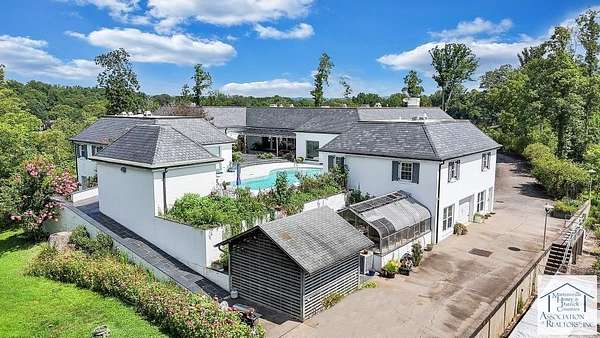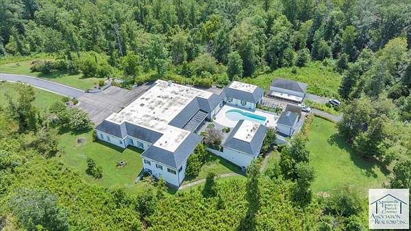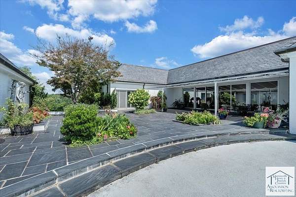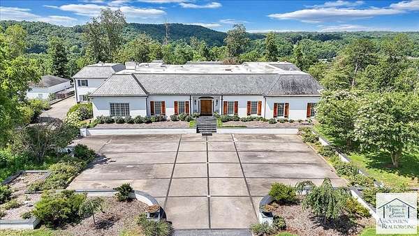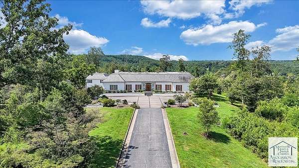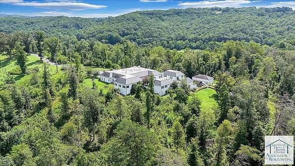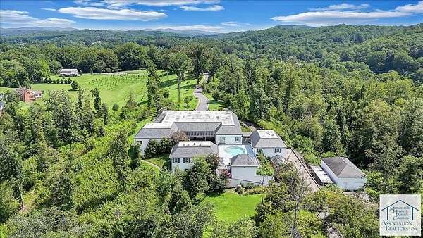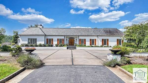 This 7,998 sq ft main house, completed in 1969, showcases a classical yet imposing architectural style that reflects its pedigree as the home of Thomas B. Stanley, son of the former Governor of Virginia. Crafted from premium materials, the residence boasts a slate roof, copper gutters, and elegant hardwood floors throughout, combining timeless elegance with modern durability. A spacious heated courtyard awaits guests, culmination in a grand entrance that sets the tone for the refined interiors within. The home's facade incorporates symmetrical wings and a central portico, accentuated by exterior lighting that highlights its stately silhouette after dusk. Massive windows frame panoramic views of the Blue Ridge mountains, while custom millwork and architectural moldings in key rooms deliver a sense of old-world craftmanship. Inside, nine bathrooms and eight bedrooms, including a sumptuous primary suite, provide accommodations for extended family. Double sheet rock walls throughout house, switch plates from Switzerland, doors from Australia ( extra thick). You will find two fully appointed guest houses measuring approx between 1,00 & 1,300 sq ft respectively. House was build by Kyle and Doug Love. 6 car garage, inground pool.