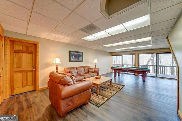 This FULLY RENOVATED 4 bed 4 bath cabin in Big Canoe on a corner estate lot, totaling 3.42 acres is sure to wow you. Enjoy YEAR ROUND MOUNTAIN VIEWS! Freshly refinished WIDE YELLOW PINE HARDWOODS adorn the main floor and upstairs. Enjoy CUSTOM LUXURY TILED SHOWERS, and HAND-SELECTED CUSTOM GRANITE COUNTERTOPS in the kitchen. The CATHEDRAL WOOD BEAM CEILINGS on the main floor and upstairs are absolute show stoppers. All four bedrooms include their own ensuite full bathroom. Enjoy the Master bedroom and main guest room on the main floor, along with the dining room, kitchen, and main family room, which includes the cedar plank wrapped wood burning fireplace. The kids will love the loft area, with their own bedroom and bathroom. The final guest bedroom is located on the terrace level, also with its own completely updated bath. Enjoy the card table in the loft, adjacent an expansive mountain view, or the billiard room and foosball table downstairs, just steps away from the deck that runs the entire width of the house, complete with HOT TUB. On the main floor, enjoy your pick of covered deck, screen porch, or open air deck - perfect for family gatherings! The house enjoys a circular driveway, and is on a quiet street, while still only a couple of minutes from the marina and other amenities that Big Canoe offers. Home being sold TURN KEY other than a few personal items.