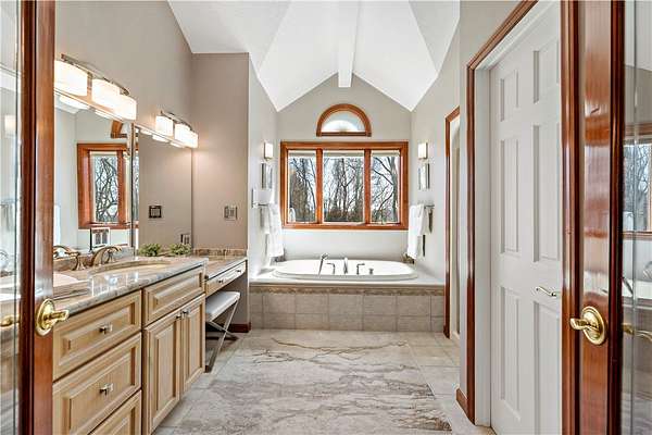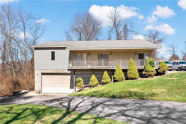 Set on over 4.5 private acres in Collier Township just minutes from I-79, I-376, and Robinson, this stunning property offers the perfect blend of convenience, versatility, and luxury. Enjoy a quick commute to downtown Pittsburgh and Pittsburgh International Airport while coming home to your own secluded oasis. This truly unique estate features a beautifully maintained brick home along with an additional detached garage & building that could easily be converted into a second Single Family Home. This could be a multi generational family dream! Step inside to an impressive two-story entry that sets the tone for the home’s elegance. The sunken living room showcases vaulted ceilings and rich cherry hardwood flooring, seamlessly flowing into the formal dining room with matching finishes and an open, airy feel. The kitchen is both stylish and functional, featuring cherry cabinetry, ceramic tile flooring, granite countertops, stainless steel appliances, and a bright dining area. Main-level family room with LVP flooring, opening directly to a beautifully designed outdoor patio complete with a hardtop gazebo, ample seating, and a cozy wood-burning fireplace—perfect for entertaining or relaxing year-round. A two-car attached garage with abundant cabinetry adds everyday convenience. Upstairs, an open landing overlooks the main level and leads to two spacious bedrooms and a stunning primary suite. The owner’s retreat includes a private deck, walk-in closet, and en-suite bath, along with a conveniently located laundry room just off the suite. A second full bath features soaring ceilings and skylights, filling the space with natural light. The finished lower level expands your living space with a game room, exercise room, fourth bedroom, beautifully updated full bathroom, and a finished storage room with a kitchenette—ideal for guests or multi generational living. Completing the property is a separate utility garage and an impressive additional building equipped with office space, a kitchenette, powder room, and a massive garage that can hold over 10 cars with a car lift and 14-foot ceilings—perfect for entrepreneurs, hobbyists, or car enthusiasts. This one-of-a-kind estate offers space, flexibility, and style in a prime location—an opportunity you don’t want to miss!