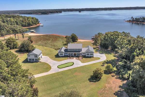 BACK TO ACTIVE DUE TO NO FAULT OF SELLER! MAGNIFICENT is an understatement! This premier property is absolutely one of a kind, encompassing a very gently-sloped 2.8 acre point lot with 700' of riprapped shoreline. It's possibly the best lakefront presence on the shores of Lake Hartwell, and arguably the best homesite on ANY upstate lake! Located in a gated community, the location cannot be rivaled for convenience: under 5 minutes to supermarkets, under 5 minutes to I-85, 10 minutes to Anderson shopping, under 20 minutes to Clemson University (20 by boat!), about 35 minutes to Greenville and under 1.5 hours to northeast Atlanta! Keowee Club is an exclusive private lakefront community, with only 13 owners. Each owner has an equal share of a protected area encompassing 89 acres. Only 5 years old, this home was designed to include the absolute best of everything. As you approach the home, you might be speechless! Golfers will spot the perfect putting green, right on the front lawn. The exterior finishes include white Hardie Artisan siding, a standing-seam dark charcoal metal roof, and custom handmade black shutters - a facade which brings to mind a historic southern estate home. The front porch is welcoming; fun Charleston joggling boards flank the front door. As you enter the foyer, the open plan allows immediate panoramic views of the lake through the rear windows and doors. This home is SO full of natural light in every room. Antique, reclaimed heart pine floors are present throughout both main and upper levels. The soaring 12' ceilings definitely make a statement. The roomy living area is incredibly inviting. You'll envision relaxing after a fun summer day on the lake, or watching the big game on a fall afternoon. The fireplace surround features handmade and solid brick (Old Carolina) and custom shelving. Massive sliding doors open this room up to the lakefront covered veranda, and from there, it's a very easy walk down to the double decker/double slip dock. Adjacent to the living area, the amazing cook's kitchen will have family and friends motivated to help with a gourmet meal. All appliances are top of the line Viking, custom cabinets soar toward the ceiling, and the large farmhouse sink adds the perfect touch. Above the cooktop, the backsplash also features handmade brick. There is a breakfast area in the kitchen that overlooks the lake, and just steps away from kitchen (and just off the foyer) is a stunning dining room with plenty of room to seat all your guests. Turn the corner and you will find a beautiful, functional butler's pantry/scullery that includes another farmhouse sink and the second dishwasher! Also adjacent to the kitchen, you'll find a walk-in pantry, access to the 3-car garage, and a soundproof media room. Turn the volume up without disturbing others! Beyond the media room is an exercise room overlooking the lake. The master bedroom suite is also on the main level, and is located opposite this area, ensuring owner privacy. Not only does this luxurious bedroom have fabulous lake views, but the suite features his & her walk-in closets and his & her baths....incredible! The large laundry room and the main level powder room are both located close by. Take the staircase or the elevator to the second level, where you will find 4 bedrooms, 10' ceilings, and the same superb finishes as the main level. Two bedrooms have a Jack & Jill setup; there are also two ensuite bedrooms, one of which is ADA compliant. 3 bedrooms facing the lake all have doors which access the shared balcony. In addition to everything included within the main home, there is also a 1,000 sq ft carriage house above a detached 2 car garage. This space has a vaulted living area, full-size kitchen, 2 bedrooms, 1 bath, and a porch overlooking the lake. It's the perfect spot for an in-law or guest suite. In total, this estate includes over 6,000 interior sq ft,7 bedrooms! Whole house Generac generator has just been installed, main house.