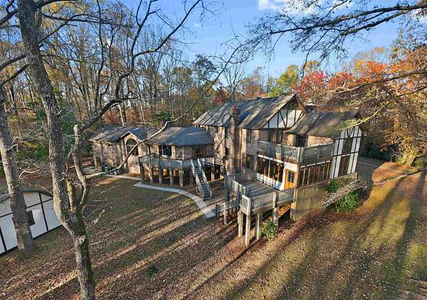 Custom built English Tudor family estate on 11.78 acres bordering Fairforest Creek in Spartanburg school district 7. Built as a custom family home in 1979, this single- owner home has 6 bedrooms and 6 bathrooms spread across 5900 square feet. It is perfect for entertaining and large family gatherings, or for those who enjoy nature and plenty of indoor and outdoor space. The front door opens into a spacious foyer with a coat closet and a full closet. Enter to a parlor-style living room and dining room, which both have window seats and ample natural light. On the other side of the entry is a large family room connected to a sunroom, perfect for large gatherings, complete with a deck off the sunroom. A full size family room/ playroom features a wall of built in shelving to help keep the family organized. The Kitchen opens into a spacious casual eating area, complete with friends and family entry door and hardwood flooring. This eating area opens onto a large deck overlooking the property. A full laundry room / mud room off the kitchen leads to a back door entrance in the one car garage complete with storage closet. The main level of the home features an expansive owner suite with hardwood floors, vaulted ceiling, fireplace and a must see bathroom featuring his & her baths complete with vanities, commodes and walk in closets, joined by a large area with soaking tub and steam shower. The second floor features its own primary suite with in-suite bathroom and both a sewing room and office, each with its own closet. An observation deck off the suite offers an overlook of the entire property. A spacious guest room with in- suite bathroom is also on the second floor, along with two additional bedrooms, a full hall bathroom complete with laundry and two hall closets. The large basement has a bedroom and full bath, along with a den with fireplace and wet bar. The basement offers a separate outside entrance and interior access to the house. This unique property features natural surroundings with separate pasture entrance, 2 stall shed roof barn, Tudor style workshop, playset and mature landscaping. A large open space leads down to Fairforest Creek, making the land ideal as a pasture or for outdoor recreation , hunting and fishing. The property is just minutes away from Croft State Park and a short 12 minute drive to downtown Spartanburg. Most of the property behind the house and in the woods is located in a floodway area. --See county map in associated documents.