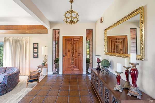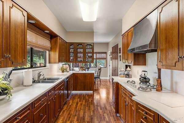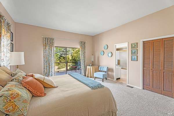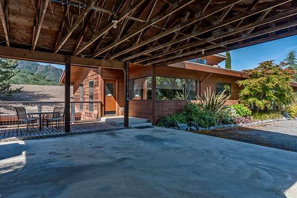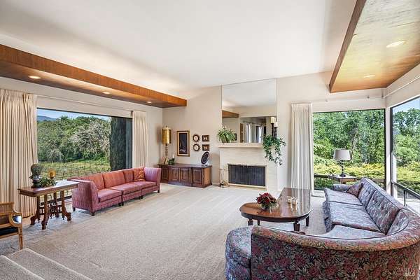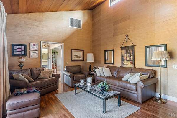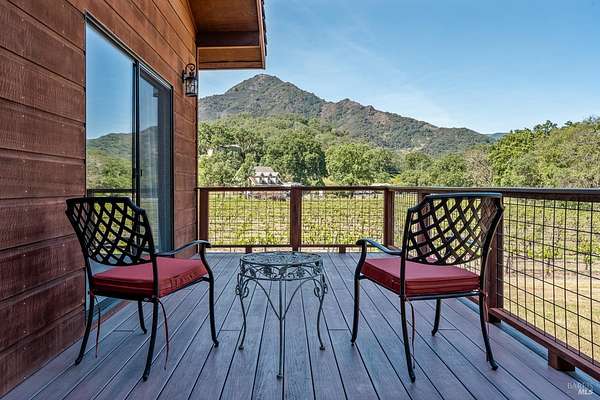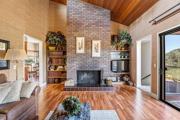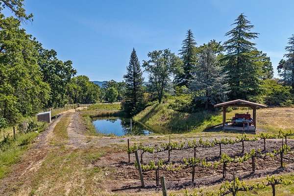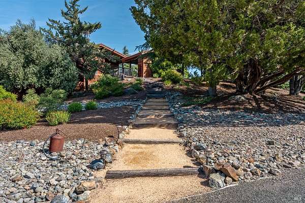 Perched on a gentle knoll with wide-open views toward Duncan Peak and the surrounding vineyard, this approximately 3,600 square foot residence sits on 10 acres of AG-zoned land just minutes from downtown Hopland. The property is designed for a true country lifestyle, offering ample space for horses, small-scale farming, or simply room to spread out and enjoy. A pondsupported by a strong agricultural welladds both visual appeal and practical utility, creating an ideal setting for livestock, irrigation, or recreation. The land is usable and well-suited for a variety of rural pursuits, with a small hobby vineyard in place that complements, rather than defines, the property. Inspired by mid-century modern design, the home emphasizes clean lines, expansive windows, and a seamless connection to its natural surroundings. A split-level layout provides a thoughtful separation of living spaces, accommodating both relaxed day-to-day living and larger gatherings. The upper level features a light-filled living room with a wood-burning fireplace and large picture windows that frame rolling countryside and mountain views. One formal dining room is positioned to capture the scenery, while the adjacent kitchen is well-equipped with built-in refrigeration, double ovens, gas cooktop, one bathroom and a casual dining area. A secondary family room with its own fireplace opens to an expansive deck overlooking the property, creating an easy indoor-outdoor flow. Multiple decks offer inviting spaces for entertaining, outdoor dining, or simply taking in the open skies and peaceful surroundings. The lower level includes three bedrooms and 3 bathrooms, highlighted by a spacious primary suite with walk-in closet, en suite bath, and direct access to a private deck. Additional guest accommodations are well-separated, including a flexible en suite bedroom with its own exterior access. With well and septic infrastructure in place and flexible agricultural zoning, the property lends itself to a variety of useswhether as a country estate, equestrian setup, or private retreatoffering privacy, usable land, and close proximity to Hopland's restaurants, tasting rooms, and amenities.