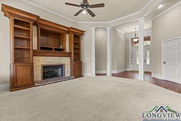- Carpeting, Fireplace, High Ceilings, Tile Flooring