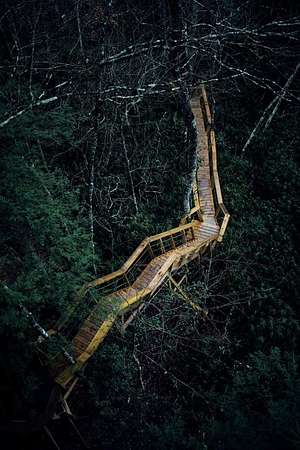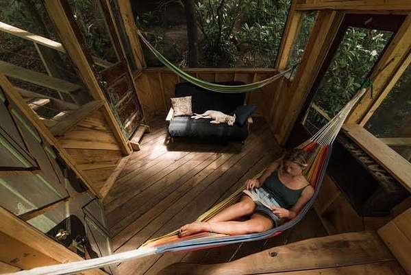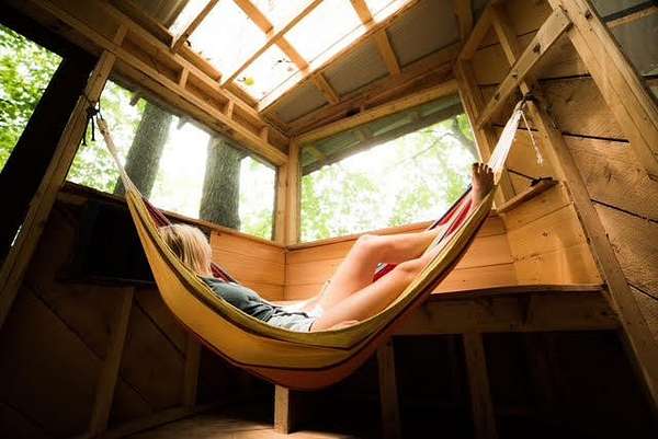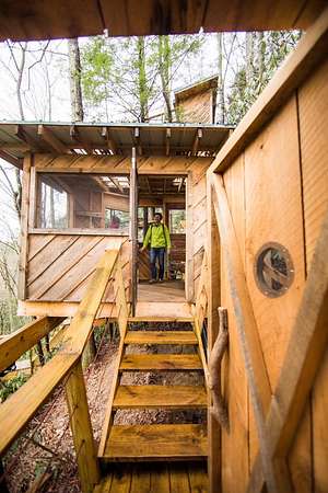 From Slade head towards Nada Tunnel. Once Through the tunnel Laurel Ln will be on your right just past Martins Fork Trail head. You will turn onto Laurel Lane and cross a small bridge. Follow the gravel road up and make the sharp right hand turn. Once you make the turn the road levels out and about 100' on your right is a gravel road that goes up to the tree house. Park at the bottom and hike up.