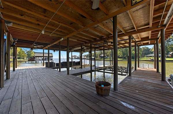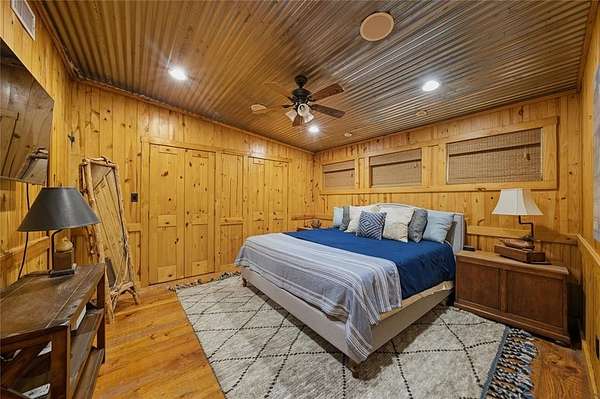 You will love the boat dock which is accommodating for 2 large boats and floating jet ski slips for four watercraft! Don't miss the entertainment potential of the clubhouse up above on the party deck! This is a heated and cooled space utilized as overflow bunk space and game room! This property is ideal for a corporate retreat, hosting private events, you could add multiple cabins, short term rental is allowed. Excellent opportunity to purchase a property that offers all of the reminders of a summer camp location including ample room to park and play!