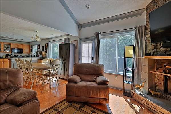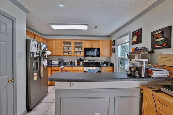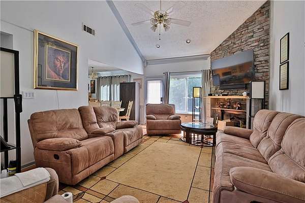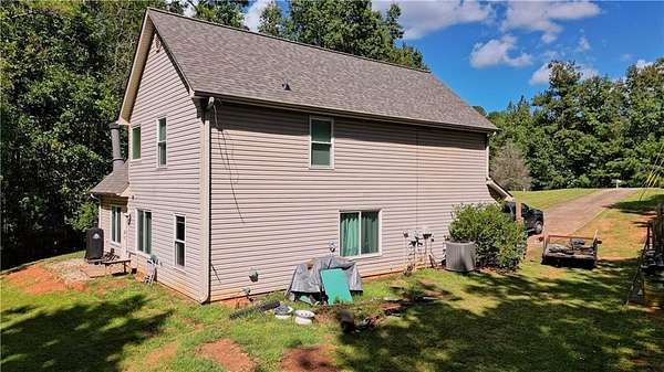 Nestled at the end of a quiet cul-de-sac on 3.64 wooded acres with a creek along the rear of property, this home offers the rare blend of privacy, nature, and comfort with modern efficiency. Step inside to a two-story living room with a cozy fireplace that opens to the dining area and eat-in kitchen complete with breakfast bar. A main-level office provides an ideal work-from-home or flex space. This home has been thoughtfully maintained with meaningful upgrades: a new roof (2025), new HVAC (2024), ENERGY STAR smart kitchen appliances, and a hardwired generator for extra peace of mind. Flooring includes hardwoods, ceramic tile, and soft carpeted bedrooms, with a two-car garage for practical everyday living. Enjoy the quiet of the trees and the space to breathe, while staying close to Griffin, Barnesville, local schools, parks, and major routes for an easy everyday routine. One or more photos are digitally decluttered (furniture removed only). Each edited image appears immediately before or after its unedited original in the photo sequence. No permanent features, fixtures, finishes, or room dimensions were altered. Some financing options may allow qualified buyers to assume the existing VA loan at approximately 2.5% interest, subject to lender and VA approval. Please inquire for details.