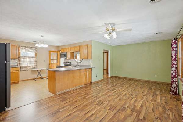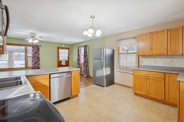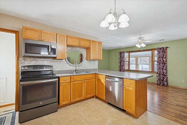 Welcome to Lake Living, offering the ''best of both worlds'' experience with views of Lyon Lake and your own private waterfront on tranquil Long Lake. This beautifully updated home is ready for you to enjoy immediately, boasting a brand new roof (2025), replacement windows, and a newer kitchen with modern flooring. The kitchen features a convenient snack bar and is open to the living room-an ideal layout for effortless entertaining. Prepare to be impressed by the gigantic primary suite, designed for comfort with two huge walk-in closets, guaranteeing no more closet space arguments! Two additional bedrooms offer ample closets. Enjoy gorgeous sunset views from one of three delightful three-season rooms. The full walk-out basement adds significant living space, including a large family room, a handy kitchenette, and a full bath. For the water toys, car collection, or hobbyist, this property delivers: 24x40 pole barn with two overhead doors. Start your next chapter on the water.