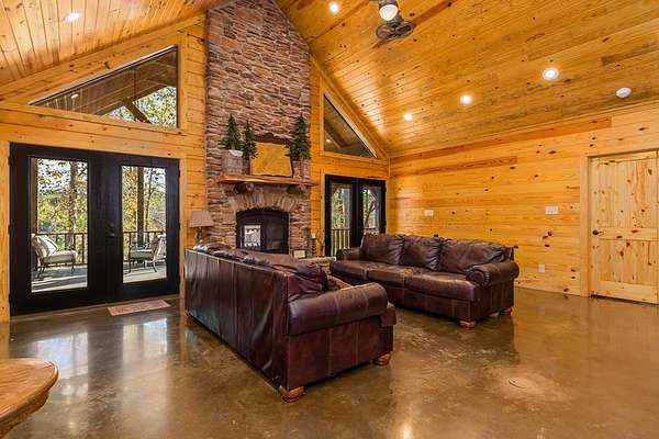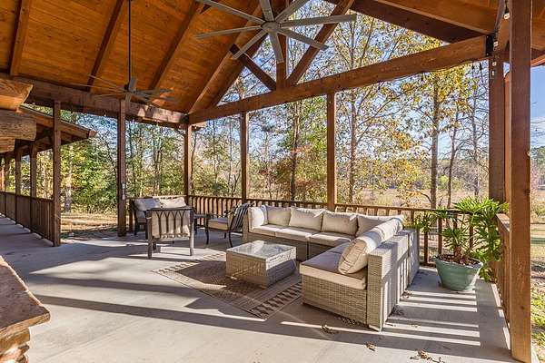 Discover a rare opportunity to own a stunning log home along the shores of Sam Rayburn Lake. This warm, inviting retreat blends rustic charm with modern comfort. A full wrap-around porch offers endless places to relax, take in the wilderness, and enjoy peaceful lake views from sunrise coffee to some of the most beautiful sunsets in the area. Inside, rich pine walls and ceilings, stained concrete floors, and a striking indoor/outdoor rock fireplace with log mantles create a timeless cabin atmosphere. The kitchen features a farmhouse sink, built-in microwave drawer, double oven, and ample workspace. The primary bathroom offers a clawfoot soaking tub and spacious walk-in steam shower for true relaxation. A pre-poured concrete pad is ready for a future garage or shop. If you're searching for a slice of heaven on earth, you've found it. Don't let low lake levels distract from the beauty and serenity here; the water will return, and so will the full magic of lakeside living.