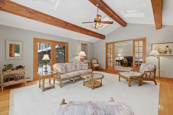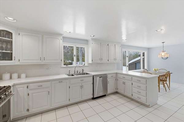 Set gracefully on 2.02 private acres this immaculate 4-bed, 2.5 bath home tucked at the end of a cul-de-sac offers a rare combination of privacy and coveted neighborhood living in the Martha Jones School District. The interior showcases timeless design elements, including hardwood floors, custom built-ins, and the inviting warmth and architectural character of two wood-burning fireplaces. The layout is well suited for daily life and effortless entertaining, featuring an expansive eat-in kitch, formal living and dining rooms, dedicated office space, and an elegant light filled family room. Spacious primary suite boasts ensuite and WIC. Additional bdrs+ full bath provide flexibility for family and guests. Thoughtful design throughout is highlighted by a dedicated home office, cedar closet, central vac, and abundant storage. Outdoor living is equally impressive. Wrap-around deck and stone patio overlook meticulous landscape, while a tennis court elevates the lifestyle experience!