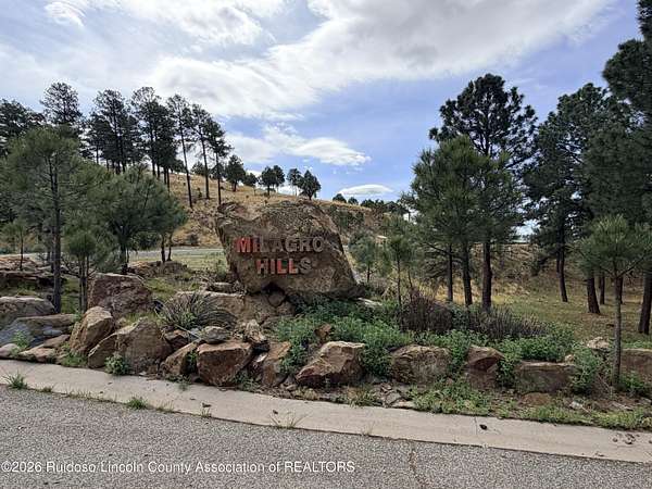 Est $3,081/moMILAGRO HILLS SUBDIVISION-13 LOTS! Nestled in a canyon ridge just east of the Ski Apache Resort and minutes away from downtown Ruidoso. Milagro Hills is a Private Community offering panoramic views, underground utilities, zoned R-1 Single Family, Covenant Controlled Subdivision, paved roads, a minimum heated floor area of 2,100 square feet, and is centrally located. Enjoy breathtaking panoramic views of the Sacramento Mountains in a quiet, relaxing, and secluded environment. Annual association fee covers common grounds, streets, drainage ponds. See CCR's for more info.
