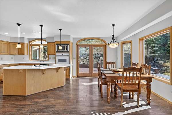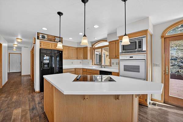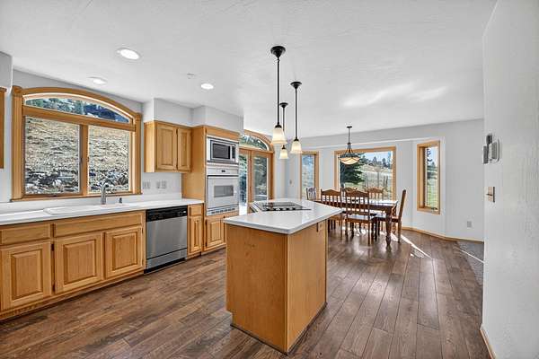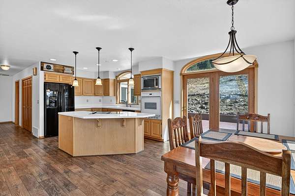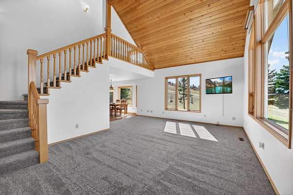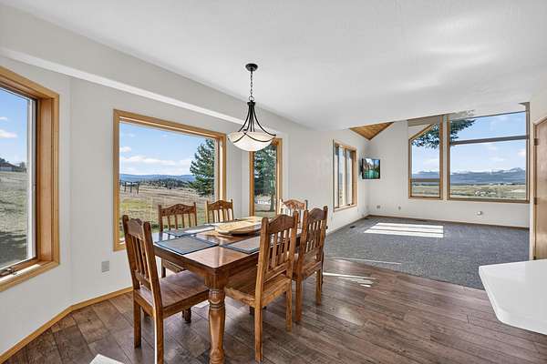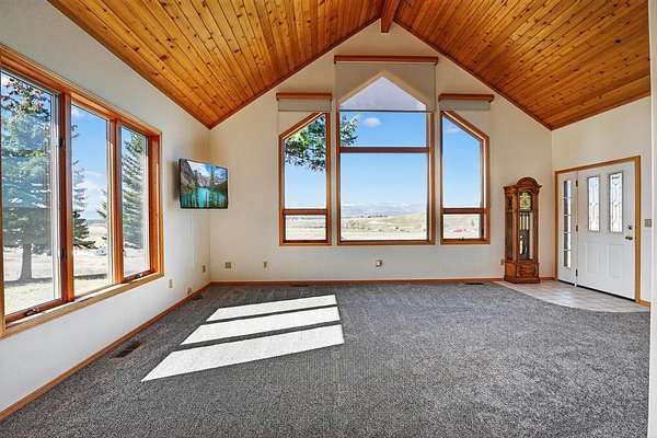 Framed by towering pines and timeless brick siding, this home feels special from the moment you arrive. The drive in sets the tone...peaceful, open, and expansive, with frequent visits from bighorn sheep and elk reminding you that you're truly living in Montana's wide-open beauty. Set near the Canadian border, this well-kept residence embraces the serenity of rural living while offering sweeping 360-degree views of mountains and valleys. From nearly every angle, the landscape unfolds, with the Tobacco Valley stretching below, the Purcell Mountains rising to the west, and the Canadian Rockies anchoring the northern skyline. It's a setting that changes beautifully with the seasons and never grows old. Inside, the home feels just as welcoming, with thoughtful updates already in place, including new carpet underfoot, fresh interior paint, a new roof overhead, and an updated HVAC system for year-round comfort and peace of mind. The kitchen is designed for gathering, featuring a generous island for preparation and casual meals, white stone countertops for a clean, elegant touch, and bar seating around the cooktop to keep everyone connected as dinner comes together. The living room's vaulted ceilings create an open, airy feel, and expansive windows draw the surrounding landscape indoors, making the outdoors part of everyday living. The primary bath offers its own quiet retreat, complete with a tiled soaking tub and a walk-in shower designed for both relaxation and refreshment. Comfortable, inviting, and beautifully set against Montana's remarkable backdrop, this home offers the kind of everyday living that feels both peaceful and inspiring.