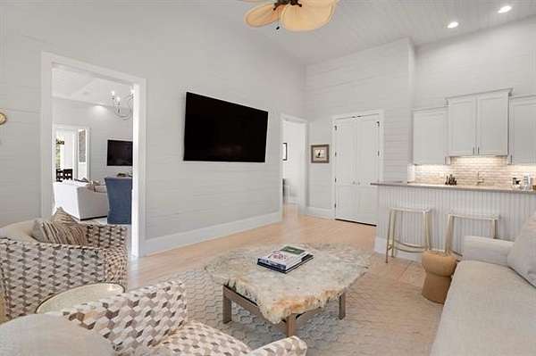 Vacation year-round in one of the most magnificent properties in Historic Lewisburg! Situated on three lots directly on Lake Pontchartrain, this home offers panoramic views from every room and Lake breezes from the many outdoor porches and patios. A spacious living room has a soaring ceiling and French doors which open to the wonderful screened-in porch with outdoor tv. A separate den with wet bar offers room to spread out, and the dining room with walls of glass bring the outdoors in. The kitchen has professional appliances and quartz counters, and an adjacent climate controlled wine cellar. The fabulous owner's suite features a spa-like luxurious bath and a private study. There is abundant storage under the home, and also a climate controlled gym, a full bath and a ground-level patio for those lakefront barbecues and crawfish boils. An elevator and whole-house generator round out the property. The current owner constructed a new 500' long all steel and fiberglass pier with an 18 ton boat lift, improved the grounds with grading, underground drainage and irrigation, re-built the exterior staircase, completed the ground floor and added epoxy flooring, and added a Padel Tennis court.