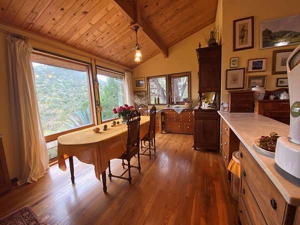 Est $3,983/moNestled in the mountains this property features views from every window, deck and patio - offering a cinematic experience of earth, sky and rugged countryside. The 2 bed/2.5 bath A-Frame Lindal home sits on 20 acres with a lovingly landscaped yard, fruit trees, walkways and quiet nooks for respite. There is a water well on site + additional shared well, large propane tanks and workshop, updated marble bathrooms, a sunroom and various decks/patios all making this enchanted hideaway a true gem.