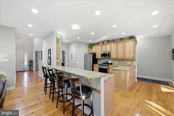 - Breakfast Area, Ceiling Fan(s), Dining Area, Entry Level Bedroom, Family Room Off Kitchen, Open Floor Plan, Walk-In Shower Bathroom, Wood Floors