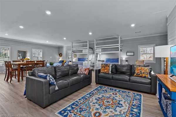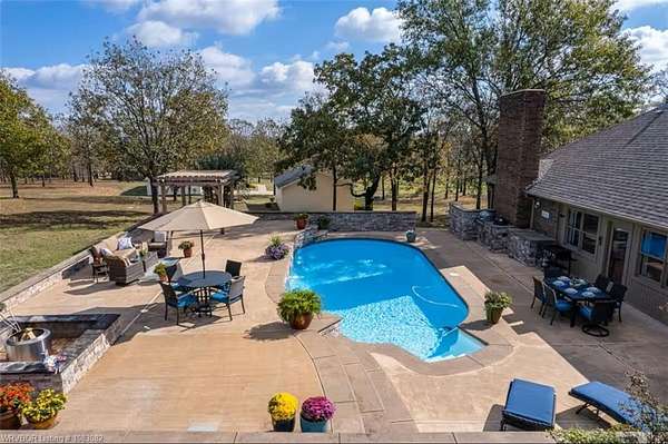 Experience Hilltop Living with Built-in Income Potential!! Nestled in the sought-after Hill Addition on 2 acres, this stunning 4-bedroom, 2.5-bath residence offers 3,666 sq. ft. (not including 1,200 sq. ft. in bunkhouse) of thoughtfully designed living space. Inside, you'll find warm and inviting touches, including a wood-burning fireplace and a large heated and cooled sunroom--perfect for year-round enjoyment and plenty of room for all your vehicles in the spacious 3 car garage. Step outside to an entertainer's dream. The backyard is fully fenced with steel pipe vinyl-covered chainlink for privacy and durability, and beautifully landscaped for low-maintenance elegance. Host unforgettable gatherings on the expansive patio featuring a saltwater pool, outdoor cooking area, and charming gazebo. But the highlight doesn't stop at home. This property includes an income-producing Airbnb, "The Bunkhouse on the Hill." With 1,200 sq. ft., accommodations for 13 guests, full furnishings, and a track record of excellent reviews, it's ready to generate revenue from day one.
