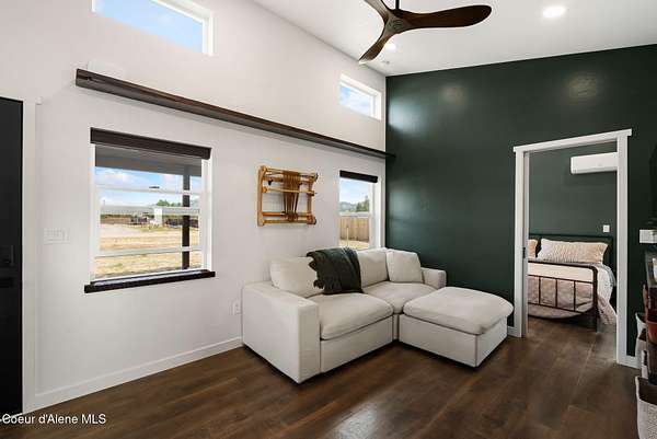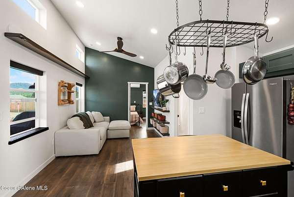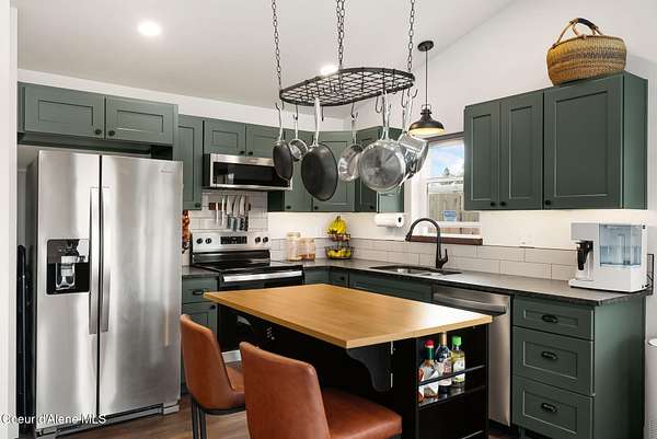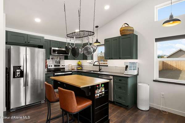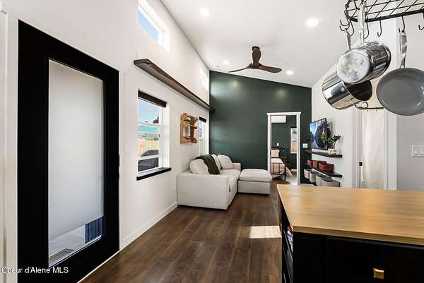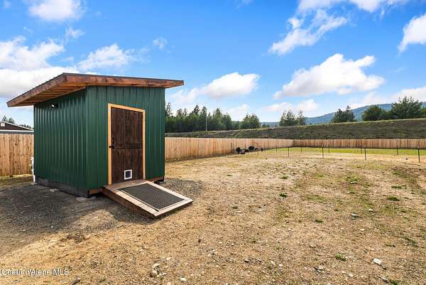 Set on 1.19 acres of flat, usable land in Sagle, just minutes to Round Lake and 10 minutes to Sandpoint, this newly built home offers a simple, well-designed space with the setup that's hard to find. Inside, the 1-bedroom, 1-bath layout is clean and efficient, featuring radiant floor heat, custom green cabinetry, and natural light that makes the home feel open and comfortable. A moveable island adds flexibility to the kitchen, allowing the space to adapt to your needs. A 6' cedar privacy fencing surrounding the backyard, an RV gate, chicken coop, dog run, 8x12 shed with electrical, giving you immediate use without the extra work. The covered porch extends your living space outdoors, ideal for slowing down and enjoying the Schweitzer and Scotchman Mountain views. This property offers a balance of privacy, convenience, and flexibility, with room to expand, create a beautiful garden, build a shop, or create something larger over time, So you don't have to choose, you can have it all.