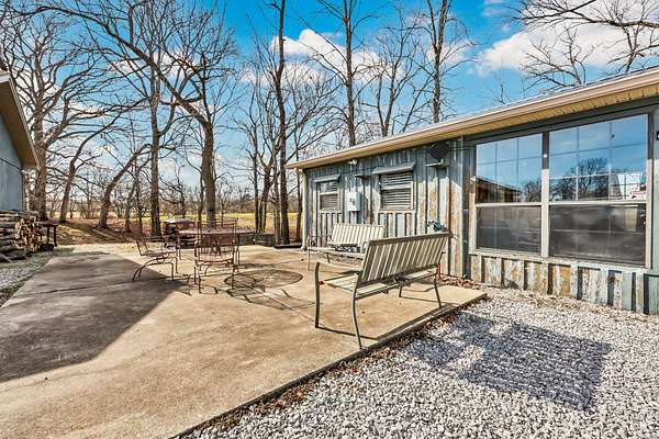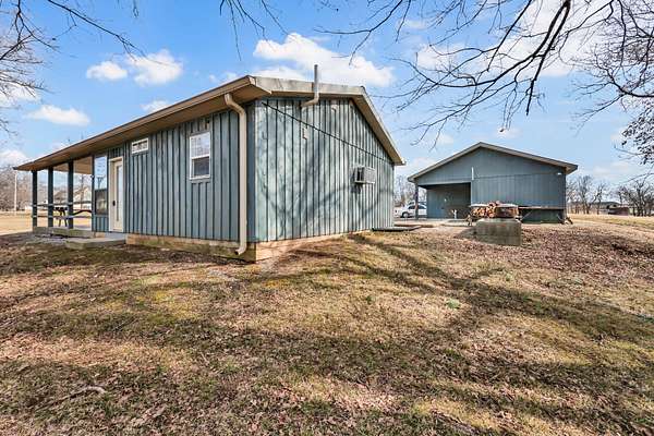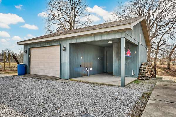 Property Features include two RV hookups with electric and water, a large covered pavilion with ceiling fans, patio area, separate garage with half bath, gravel drive, and designated bark park. Mature trees and creek side create privacy while offering flexible use potential. A rare opportunity for a weekend escape, minimalist living, or property with room to grow.