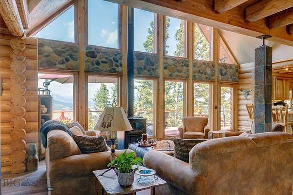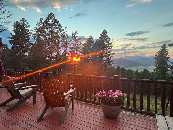 Welcome to Moose Haven, a stunning log home nestled in the serene beauty of nature. This extraordinary property offers five bedrooms (plus an office) and four baths, providing ample space. Prepare to be captivated by the incredible panoramic views of the majestic Bridger Mountains, which can be enjoyed from various vantage points, including three expansive decks. Start your mornings on the south deck, sipping a warm cup of coffee as you witness the breathtaking sunrise over the mountains. In the evenings, retreat to the upper decks or unwind in the hot tub on the lower deck, where you can marvel at the awe-inspiring sunsets that paint the sky. This home boasts an array of features that are sure to leave you in awe. Experience the comfort and luxury of radiant heat floors, providing cozy and consistent warmth throughout the residence. The surrounding forest is teeming with abundant wildlife, allowing you to observe nature's beauty from your doorstep. Situated on a generous 10.8-acre lot, this property offers a true sense of seclusion and tranquility. The wooded surroundings provide privacy and a serene atmosphere, creating a retreat-like ambiance. Inside the home, you will find beautiful appointments and meticulous craftsmanship throughout. From the soaring ceilings to the carefully selected finishes, every detail has been thoughtfully considered to create a one-of-a-kind dream home. This is not just a house; it is a sanctuary where you can escape the hustle and bustle of everyday life and immerse yourself in the wonders of nature. Conveniently located, Moose Haven offers the perfect balance of peaceful seclusion and accessibility to amenities. Just 15 miles away, you'll find the charming and historic downtown Bozeman, where you can explore local shops, dine at exquisite restaurants, and immerse yourself in the vibrant community. For outdoor enthusiasts, the renowned Bridger Bowl ski area is a mere 18 miles from your doorstep. Spend your winters carving through fresh powder and enjoying world-class skiing and snowboarding adventures. Whether you're seeking the tranquility of nature or the excitement of nearby attractions, Moose Haven provides the ideal location to embrace both. This remarkable log home offers breathtaking views, abundant wildlife, and a seamless blend of rustic elegance and modern comfort. Don't miss the opportunity to own this extraordinary property and experience the ultimate in mountain living.
