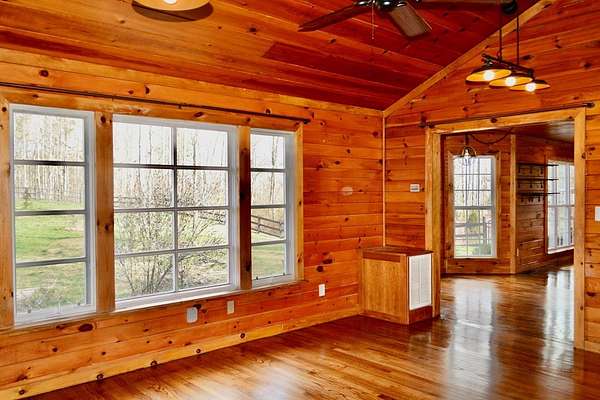 Just minutes from Downtown Blue Ridge, this ranch-style home offers single-level comfort on nearly 6 acres, with approximately 2 acres of partially fenced pasture land - ideal for hobby farmers or anyone dreaming of chickens that actually earn their keep. Inside, discover a thoughtfully maintained three-bedroom, two-bathroom residence featuring brand-new spray foam insulation throughout the attic and crawl space, ensuring year-round comfort and energy efficiency. The recently installed roof and gutters mean you can spend your weekends relaxing instead of climbing ladders. The heart of outdoor living awaits on the expansive screened porch, complete with a wood-burning fireplace that transforms cool mountain evenings into memorable gatherings. Imagine sipping your morning coffee while watching the mist rise over your own pasture. Three outbuildings provide endless opportunities for work shops or storage, while the oversized two-car garage, constructed in 2024, offers space for vehicles, hobbies, workshop and additional storage. Also adjacent RV parking. The recently permitted and upgraded septic system adds peace of mind for years to come. This potential mini-farm sits less than 1.5 miles from the charming restaurants, shops, and galleries in Downtown Blue Ridge. Schedule a showing today and start writing your Blue Ridge story!