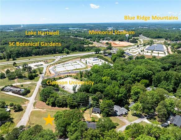 Nearly a full acre (0.97 ac) within walking distance to Clemson University, SC Botanical Gardens, Memorial and McWorther Stadiums, Little John Colosseum, Lake Hartwell, Clemson Montessori School, restaurants, shops and all downtown Clemson has to offer! Just steps from the Green Crescent Trail Network, this flat corner lot with mature trees in the established Clinkscales neighborhood is one of Clemson's few remaining spaces. Distribution lines set for relocation July 2025 to make way for your dream home. Zoned for Clemson Elementary - a 2021 National Blue Ribbon Award recipient. Harvest blackberries from your own mature brambles and enjoy a homemade cobbler. Stroll the neighborhood sidewalks, or just take in the quiet evening air. Cleared and level for easier, more cost-effective building. Short and long-term rentals permitted per City of Clemson regulations. City of Clemson sewer and water available. Browse professionally designed floorplans at sites such as and choose your own builder, or work with groups like for a simplified building process. These three lots are also being sold separately (MLS# 20288769, 20288770, and 20288772). Keep all three lots, or keep your favorites. Schedule your personalized showing today!