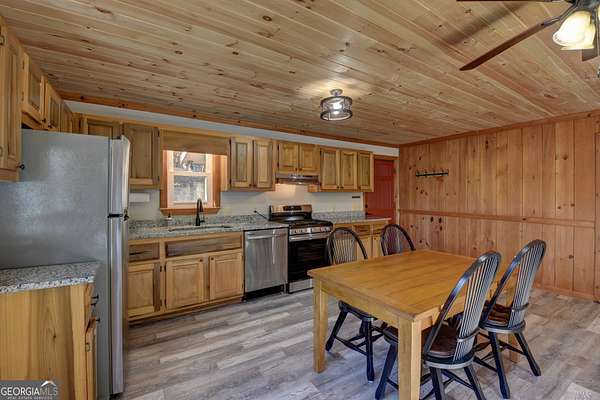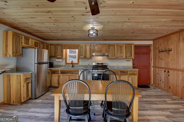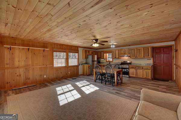Unbelievable, one of a kind property...Unrestricted, cabin, pond, detached barn/shed surrounded by trees with MANY updates, including (tankless water heater, all new windows, sliding glass door, vapor barrier, gutters with guards, pond drain, pond aeration pump, refrigerator, washer and dryer, all new facia boards, just to name a few.). This would be a GREAT candidate for a short term rental! Close to town, restaurants, schools, recreation, etc. *Beginning of the driveway is a permanent easement.
