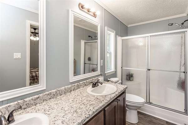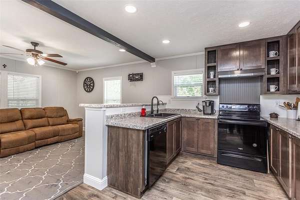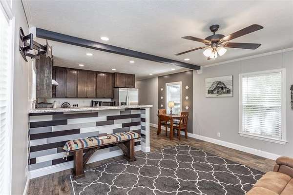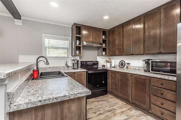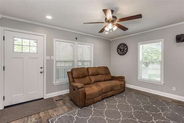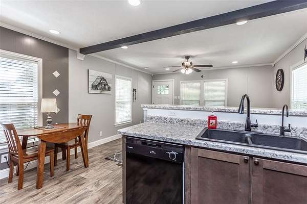This property is the definition of “loved.” Every inch of this 8.363-acre spread has been groomed, maintained, and improved with care and craftsmanship. The 2019-built 900 sq. ft. home feels nothing like a typical manufactured home—custom molding and thoughtful upgrades by a builder gives it a true residential finish. A charming covered front porch sets the tone, while the side porch off the back door overlooks peaceful wooded acreage, where deer visit almost every morning. The land is beautifully landscaped and fully pipe-fenced with no-climb wire, perfect for horses, cows, or any animals you want to bring. A 24x50 4-carport with electricity and loft for storage. 12x24 storage building, 220 amp, workbench, outside lights. (2) 10x20 loaf shed, (1) 10x16 outbuilding and a storm shelter provide exceptional utility. Includes a 0.9480-acre corner lot along busy Hwy 377, the property also carries strong commercial possibilities. This property offers far more than can be listed here. Be sure to review the MLS Additional Information for the full upgrade list, and ask your REALTOR® for all the details. MUST-SEE Buyer Approval before showing.